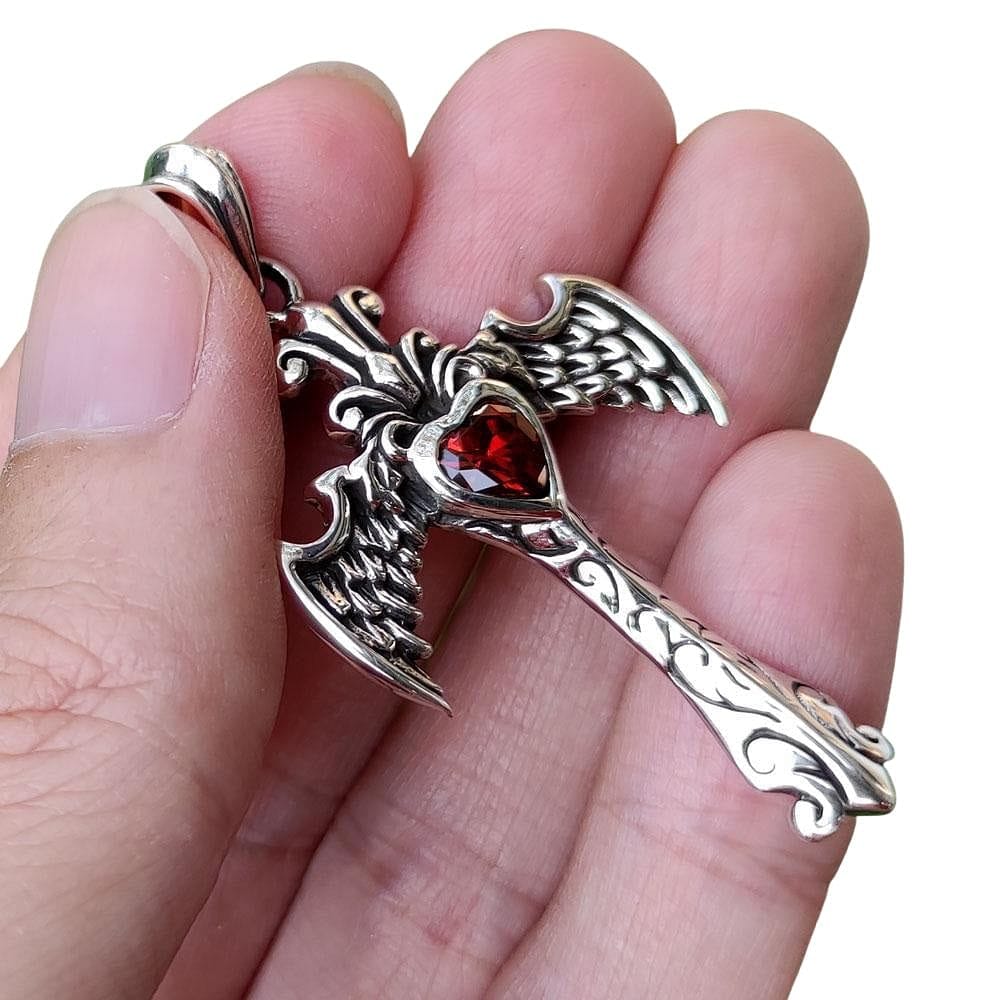 ![Röd Granat Ängelhjärtshjär Sterling Silver Silver Silver Gothic Pendent [2]](http://www.bikerringshop.com/cdn/shop/files/gothic-winged-cross-pendant-detail_{width}x.jpg?v=1766379664)