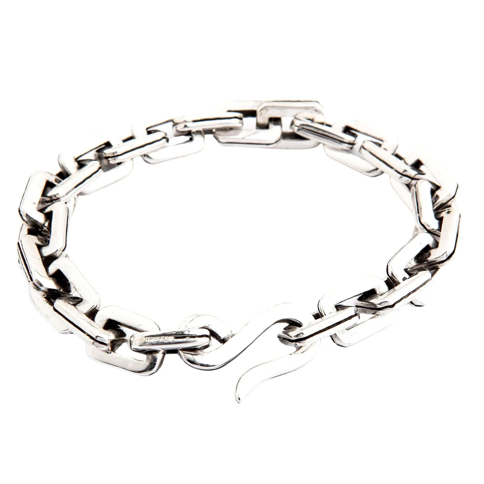 Inspirerad av den robusta skönheten och perfekta funktionen hos en riktig motorcykelkedja, har detta armband perfekt återskapade länkar som rör sig och känns som originalet. Designen är avskalad, kraftfull och ärlig, med fokus på den rena, industriella estetik som definierar äkta bikersmycken. Ett enkelt men otroligt säkert S-krokslås ser till att det sitter kvar på handleden, oavsett vart resan tar dig.