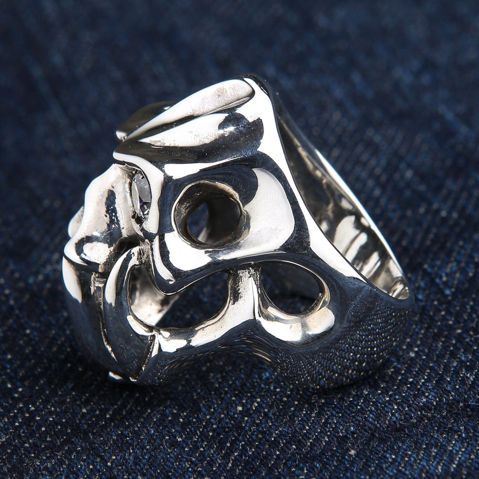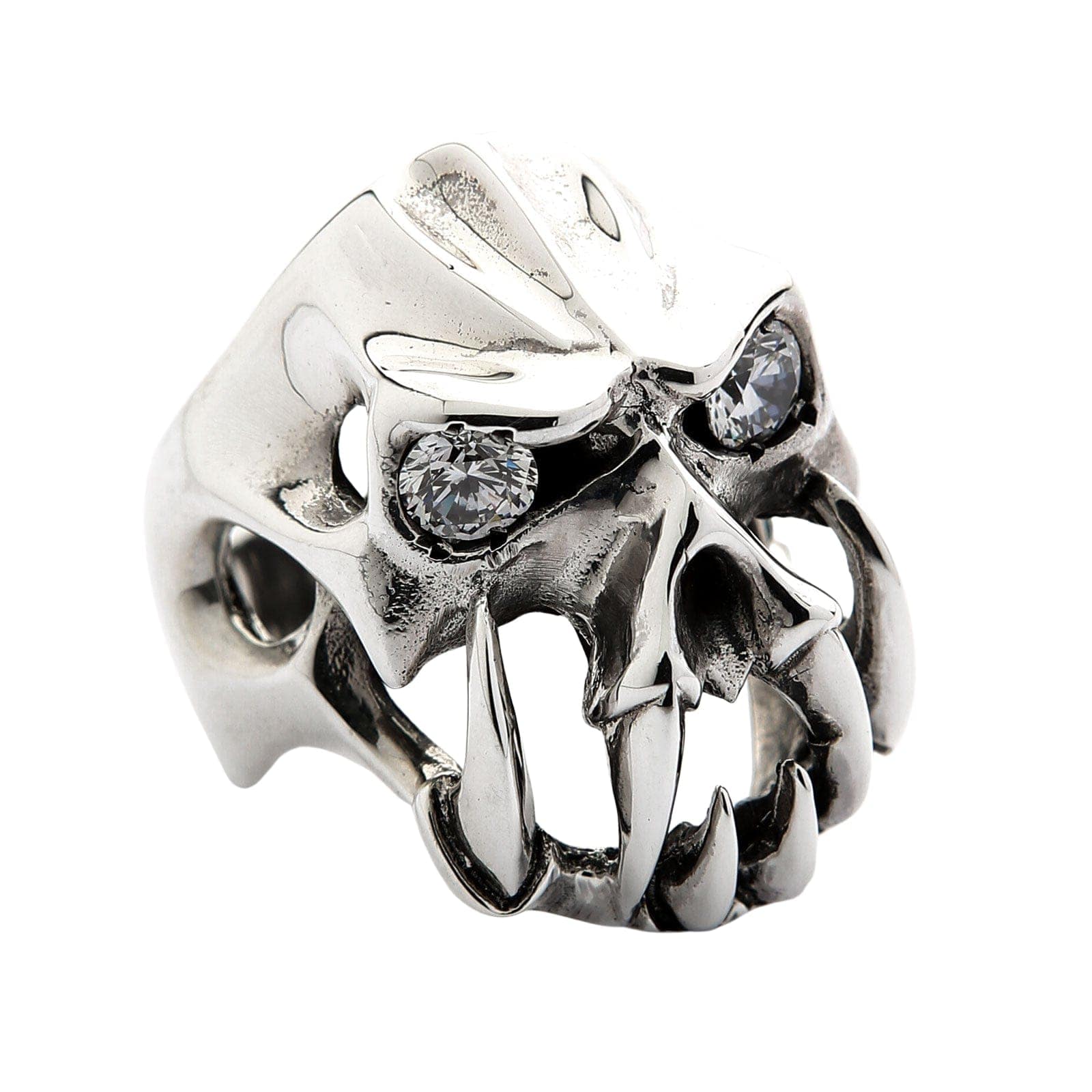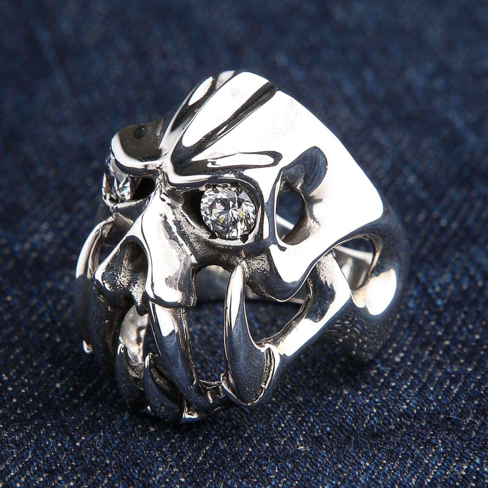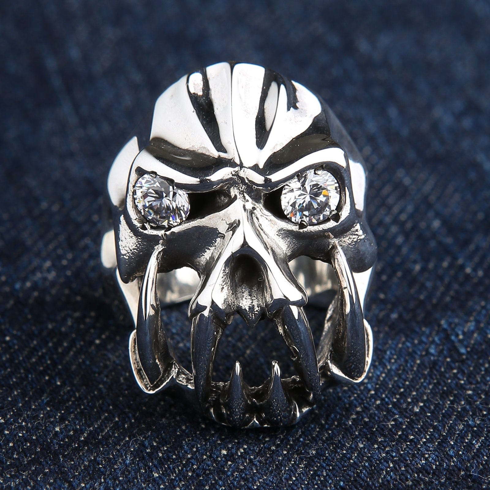 Massiv sterlingsilver-ring med djävulständer och diamantögon