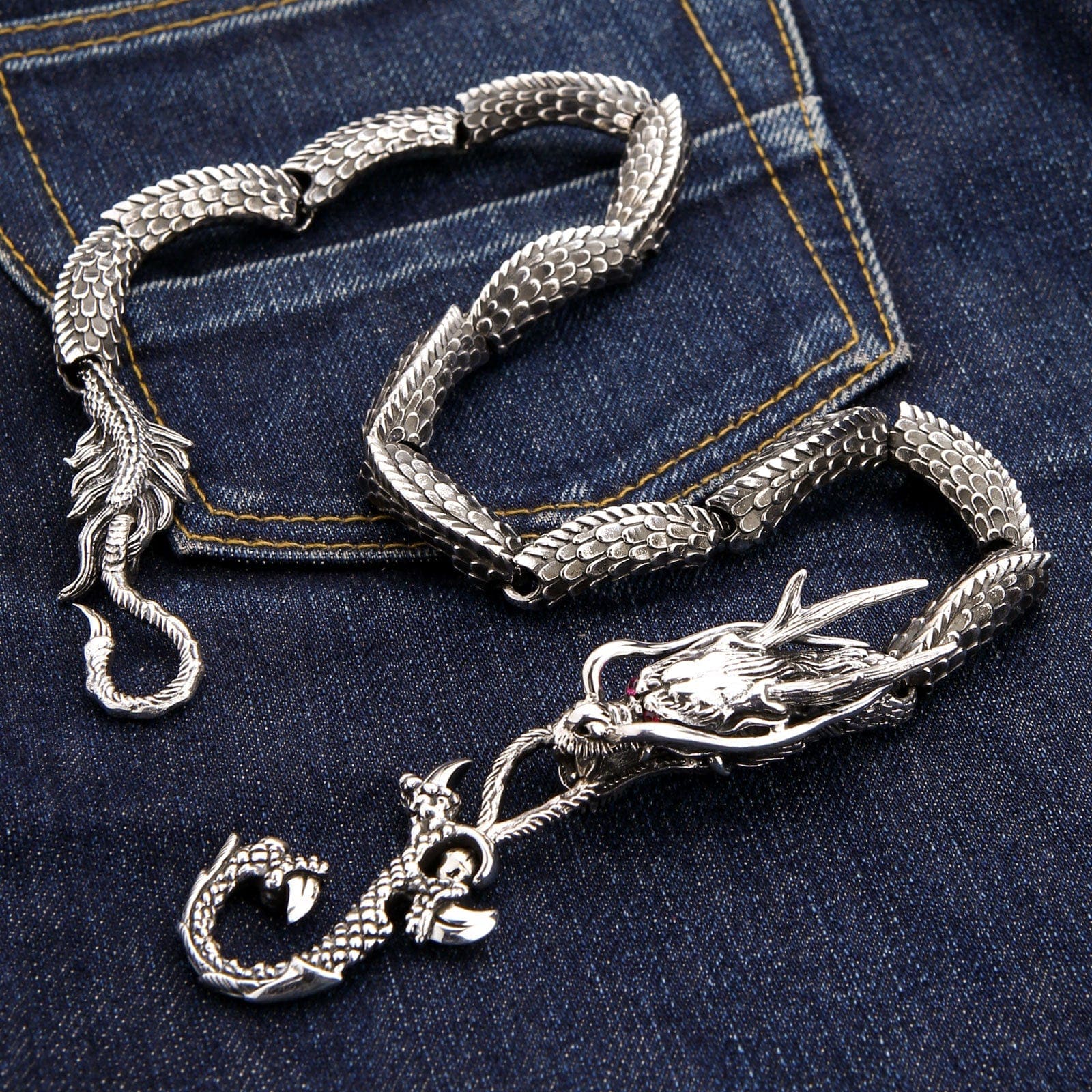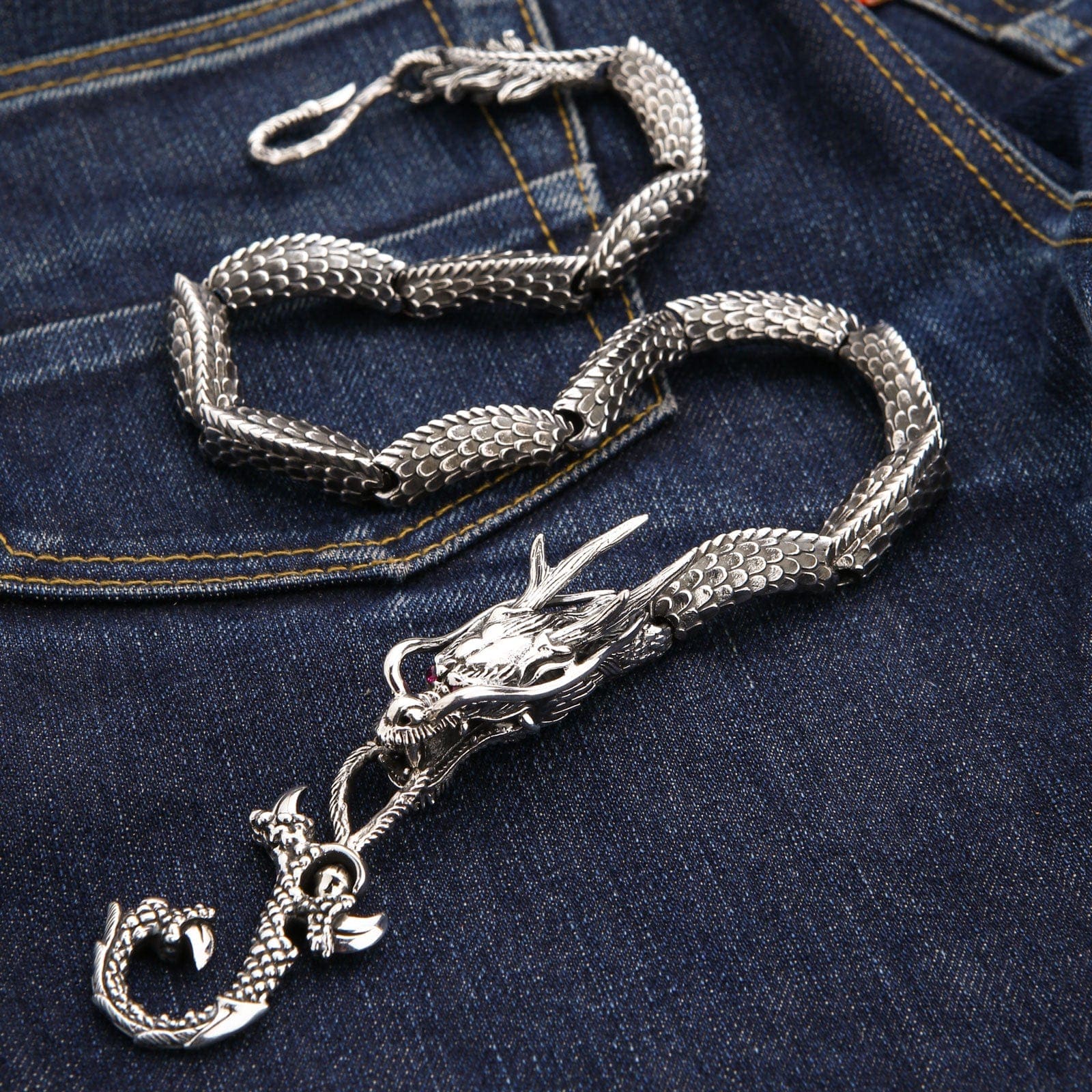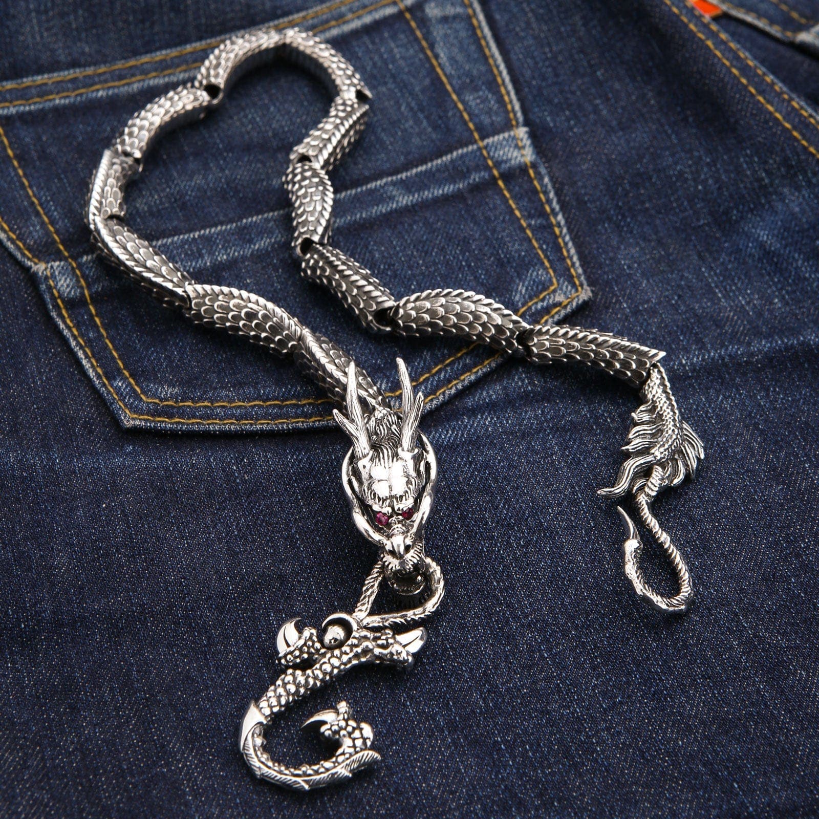 Drakkedja för plånbok – 925 sterlingsilver med rubinrött öga, biker-plånbokskedja