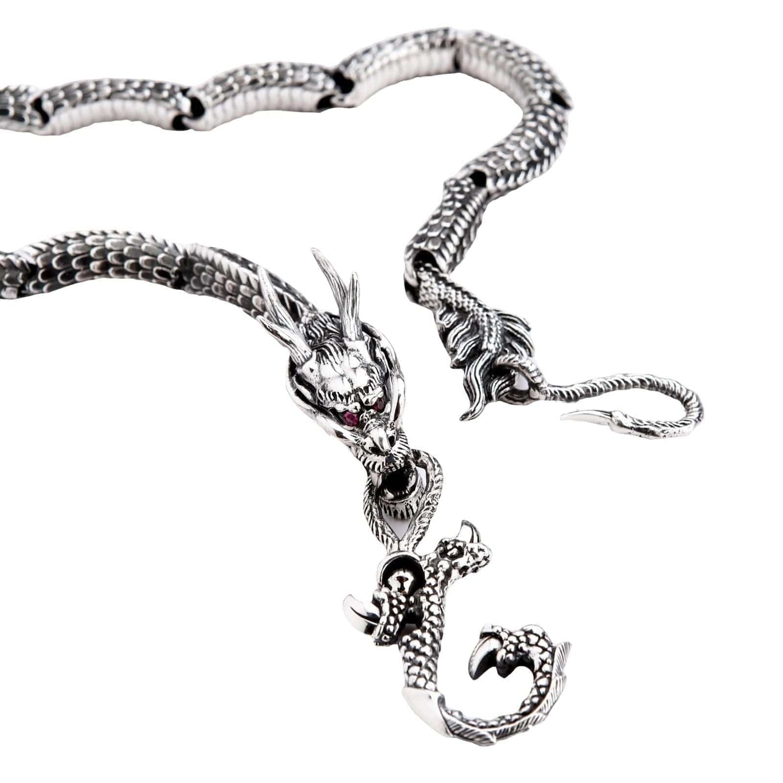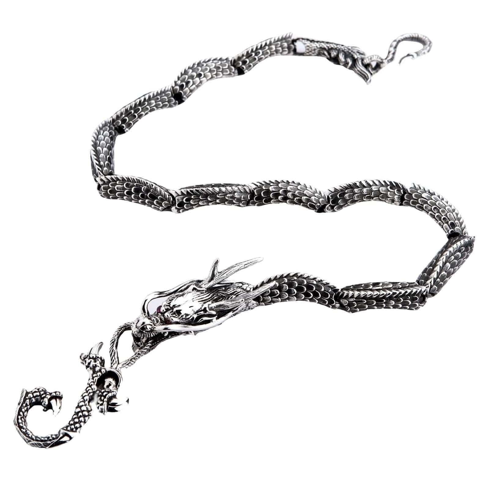 🐉 Fullständigt drakmotiv över hela länken: En fantastisk, sammanhängande design som formar en komplett, slingrande drake, där länkarna utgör dess fjäll, ett detaljerat huvud är det ena låset och dess klobeklädda svans är det andra.
