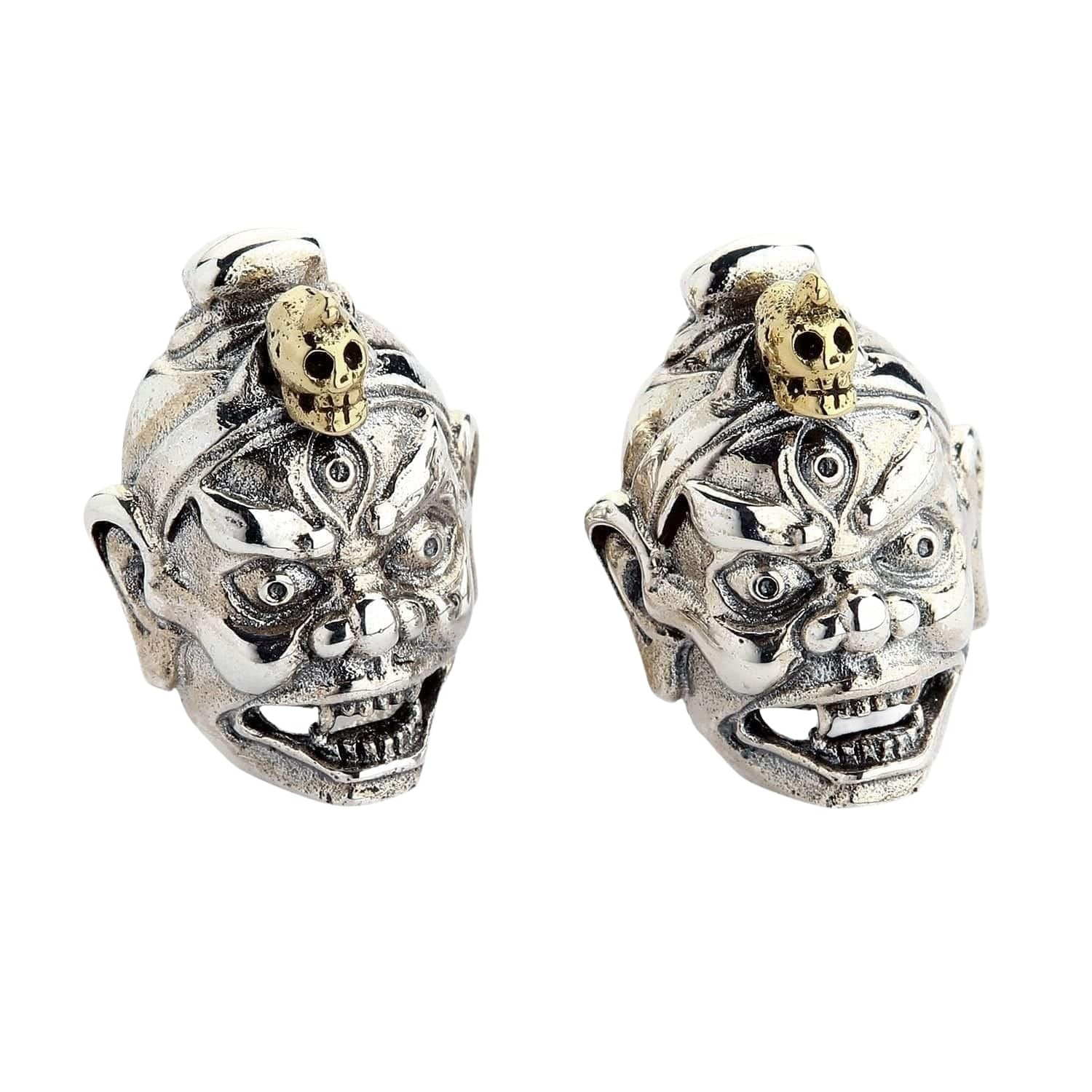 Detta är inte bara ett örhänge; det är en kraftfull beskyddare fångad i ädelmetall. Våra otroliga Tibetanska djävulsmask-örhängen är en hyllning till de kraftfulla och fruktade skyddsandar i tibetansk kultur. Omsorgsfullt handgjorda med en fantastisk tvåtonsdesign, är varje plupp ett djärvt uttryck av andlig styrka, skapad för att avvärja ondska och utstråla kompromisslös kraft.