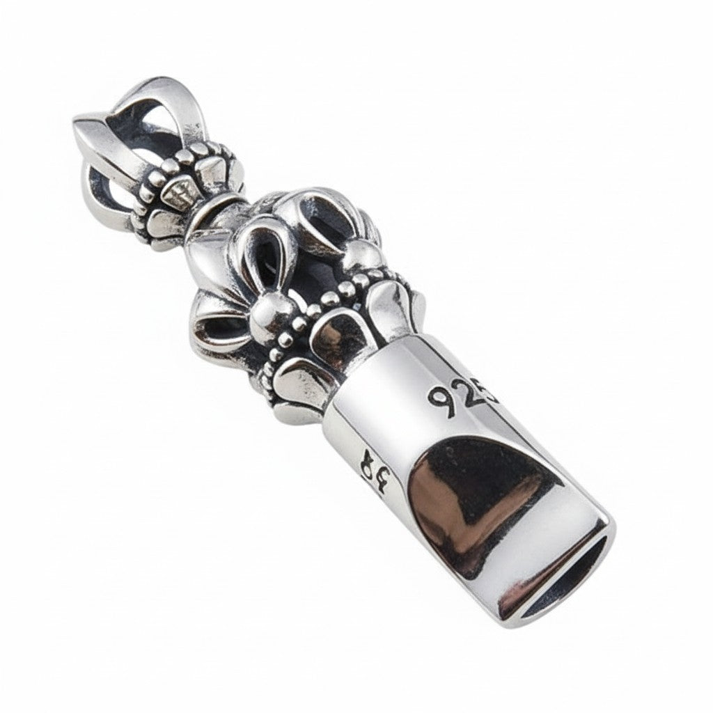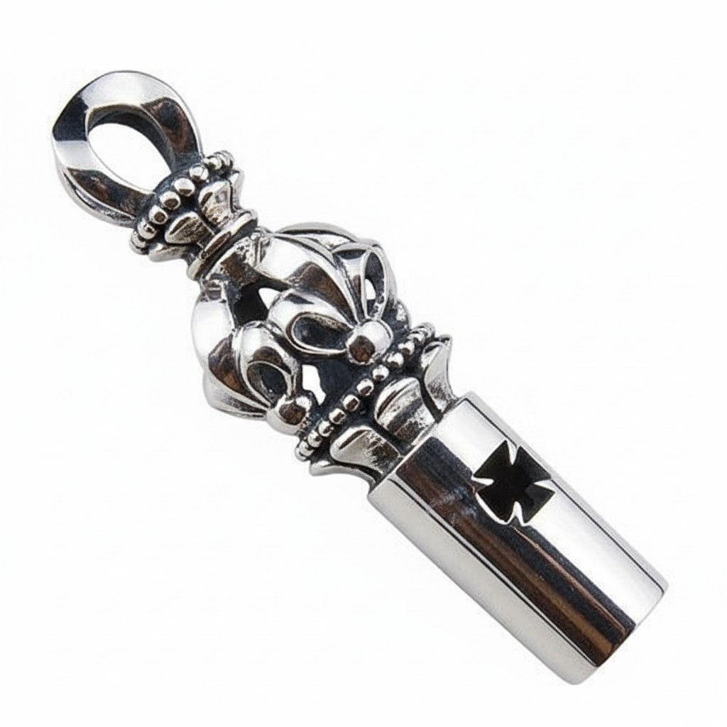 Gör ett djärvt avtryck med Whistle Sterling Silver Medieval Pendant. Tillverkat av massivt 925 sterling silver, detta smycke har detaljerad Fleur de Lis och korsoch är krönt med en krona för extra lyxkänsla. Ett unikt och funktionellt hänge som inte bara ser slående ut – det fungerar faktiskt som en visselpipa!