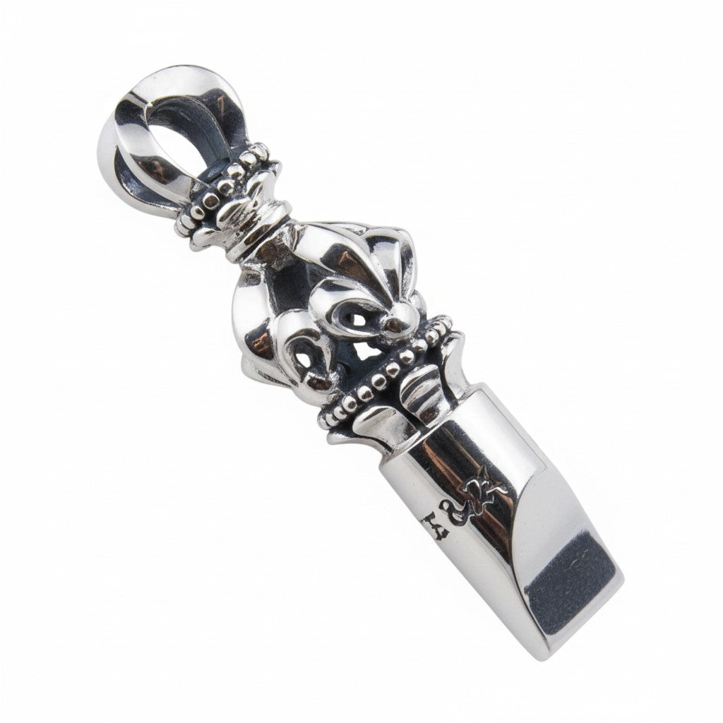 🎺 Visselpipa Sterling Silver Fleur de Lis & Kors Medeltida Hänge