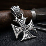 火焰鐵十字吊墜-純銀重機風格吊墜