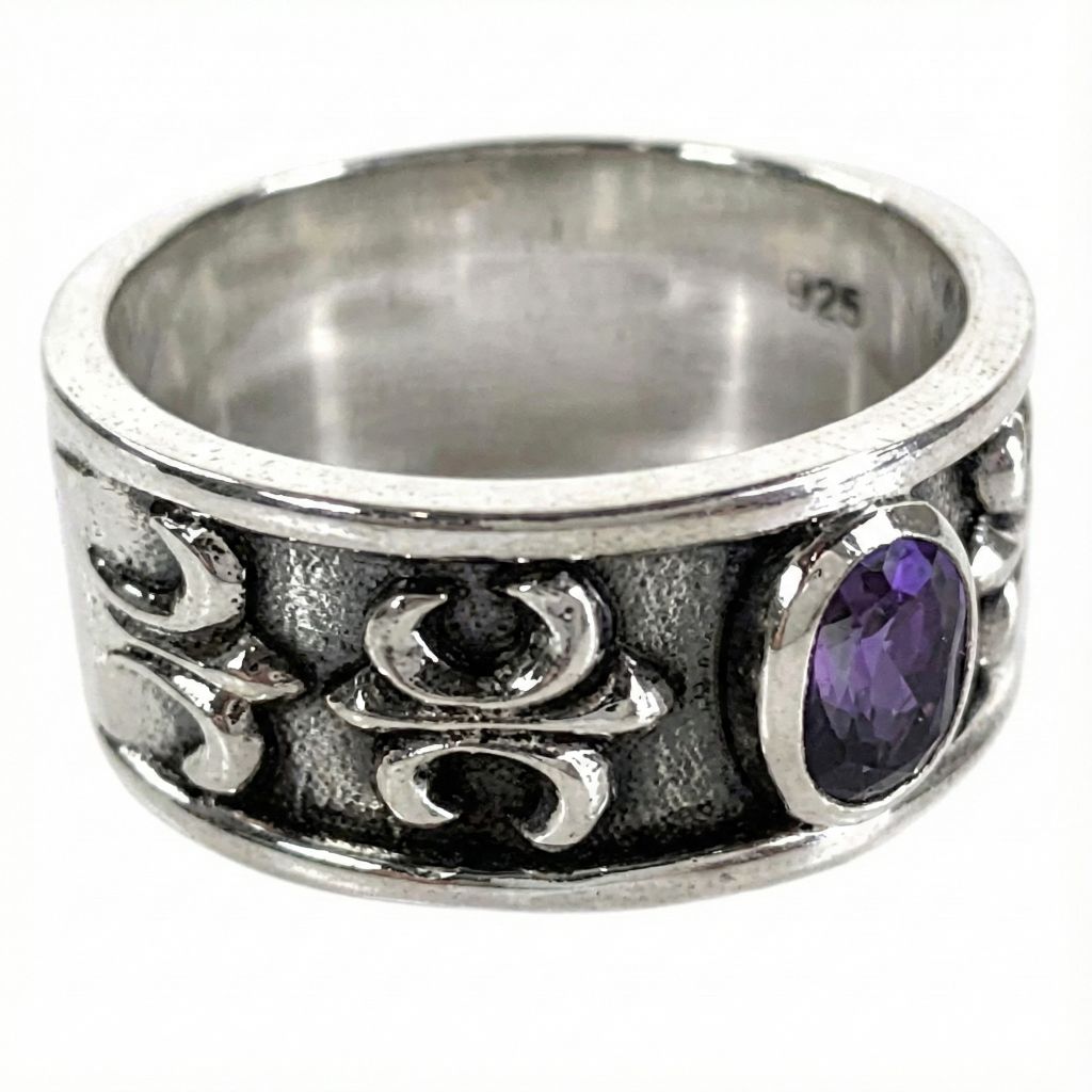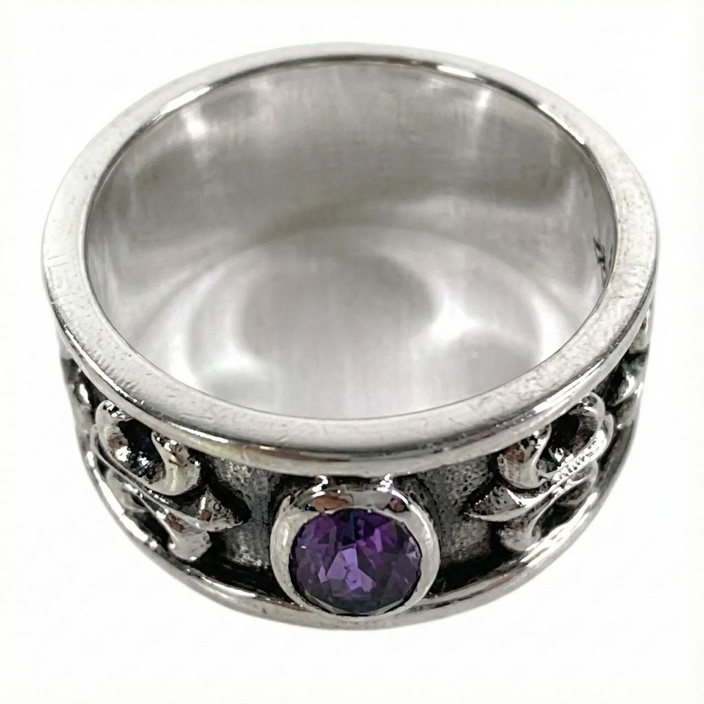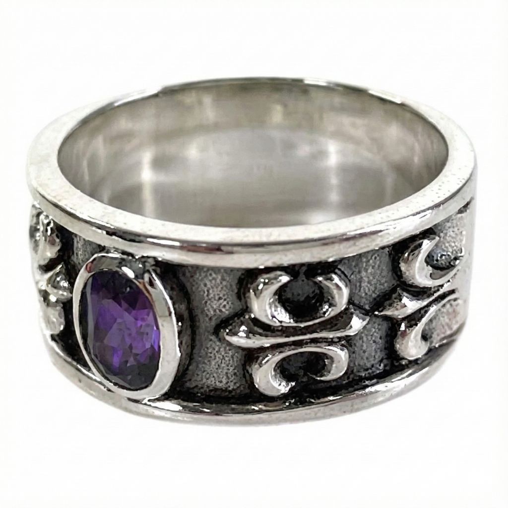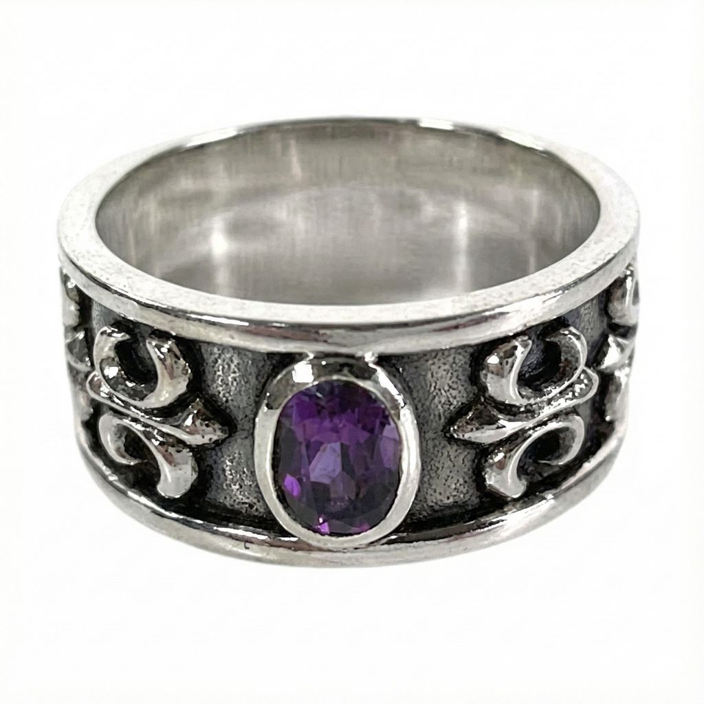 紫水晶百合紋純銀男士戒指-哥德風格,經典永恆