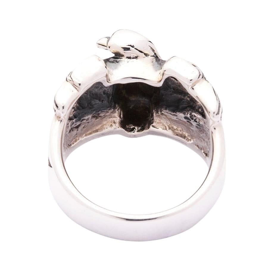 老鷹是天空無可爭議的王者,象徵原始力量與無限美國自由精神。這枚戒指展現了雄鷹展翅高飛的英姿,每根羽毛的細膩刻畫與銳利目光,充分體現其霸氣主宰。