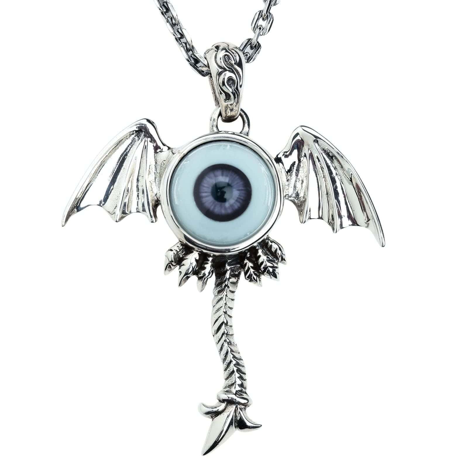 哥德眼球雙翼項鍊-手工925純銀個性吊墜