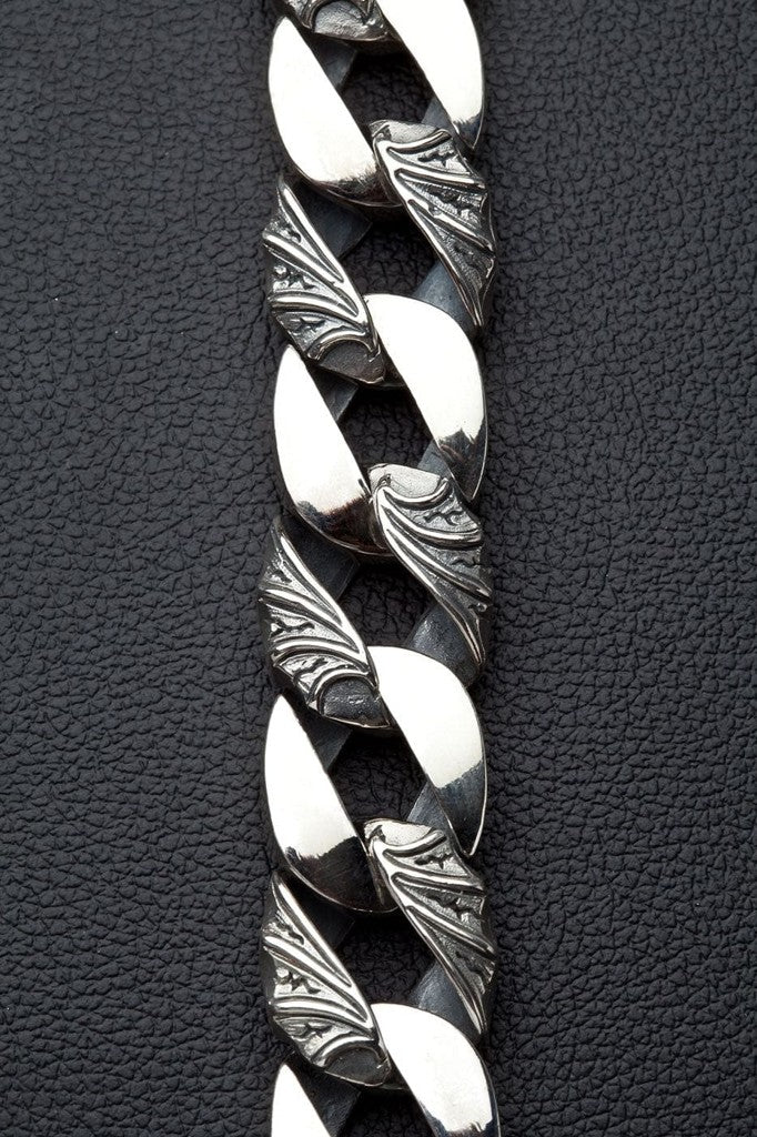展現大膽風格,佩戴我們的部落皇冠純銀男士手鍊,以頂級 .925 純銀手工打造。這款堅固的飾品擁有精緻的部落風格細節,並以獨特皇冠圖騰扣頭作為亮點。重達 145 克,寬約 7/8 吋,份量十足,兼具耐用性與舒適度。每個鏈節都經細緻拋光,展現卓越工藝與精緻設計。無論日常佩戴或特殊場合,這條手鍊都能為您的珠寶收藏增添力量、優雅與品味。每條手鍊均刻有明顯的 .925 純銀標記,保證純度與品質。是欣賞獨特手工藝飾品、追求強烈存在感人士的完美配件。