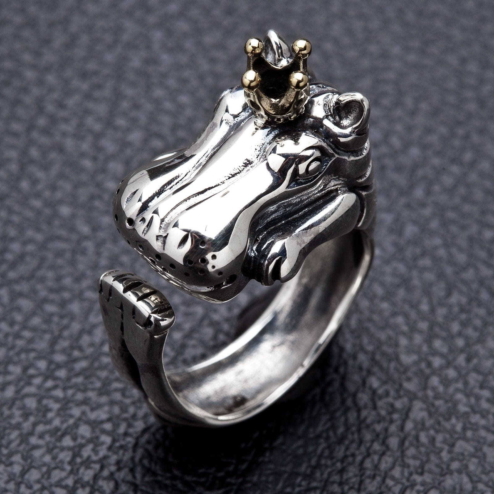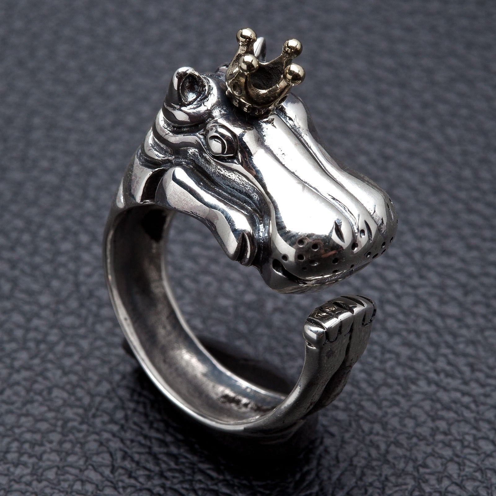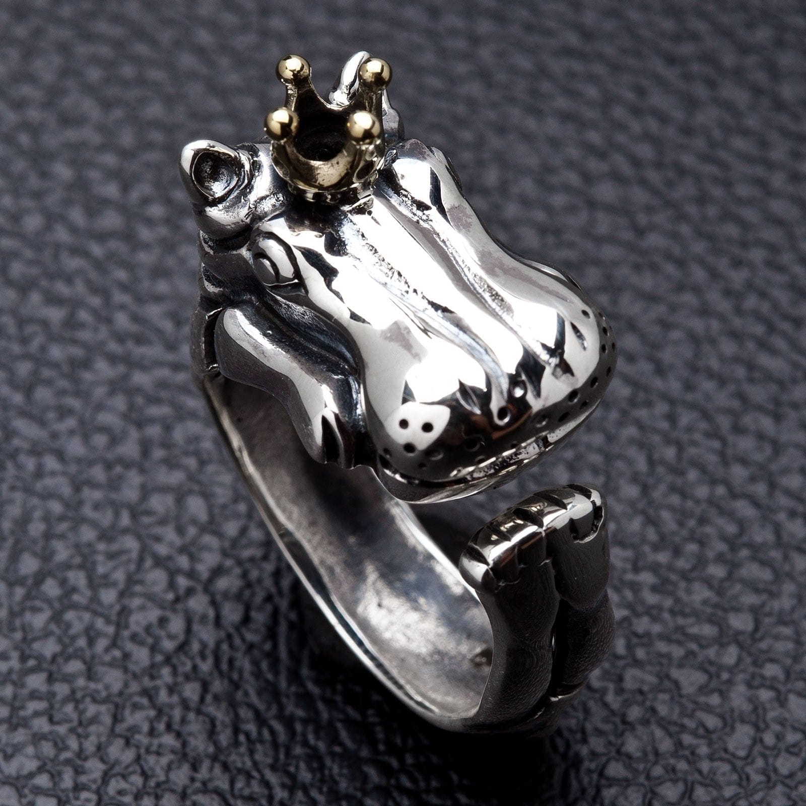 🦛 獨特河馬環設計: 以整隻河馬為主題,皇冠頭部與四肢分別位於戒指兩端,營造出獨特環繞式造型,趣味與力量兼備。
