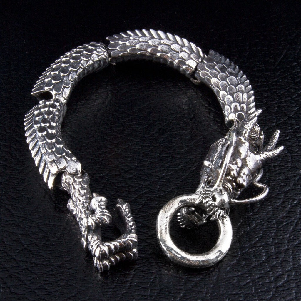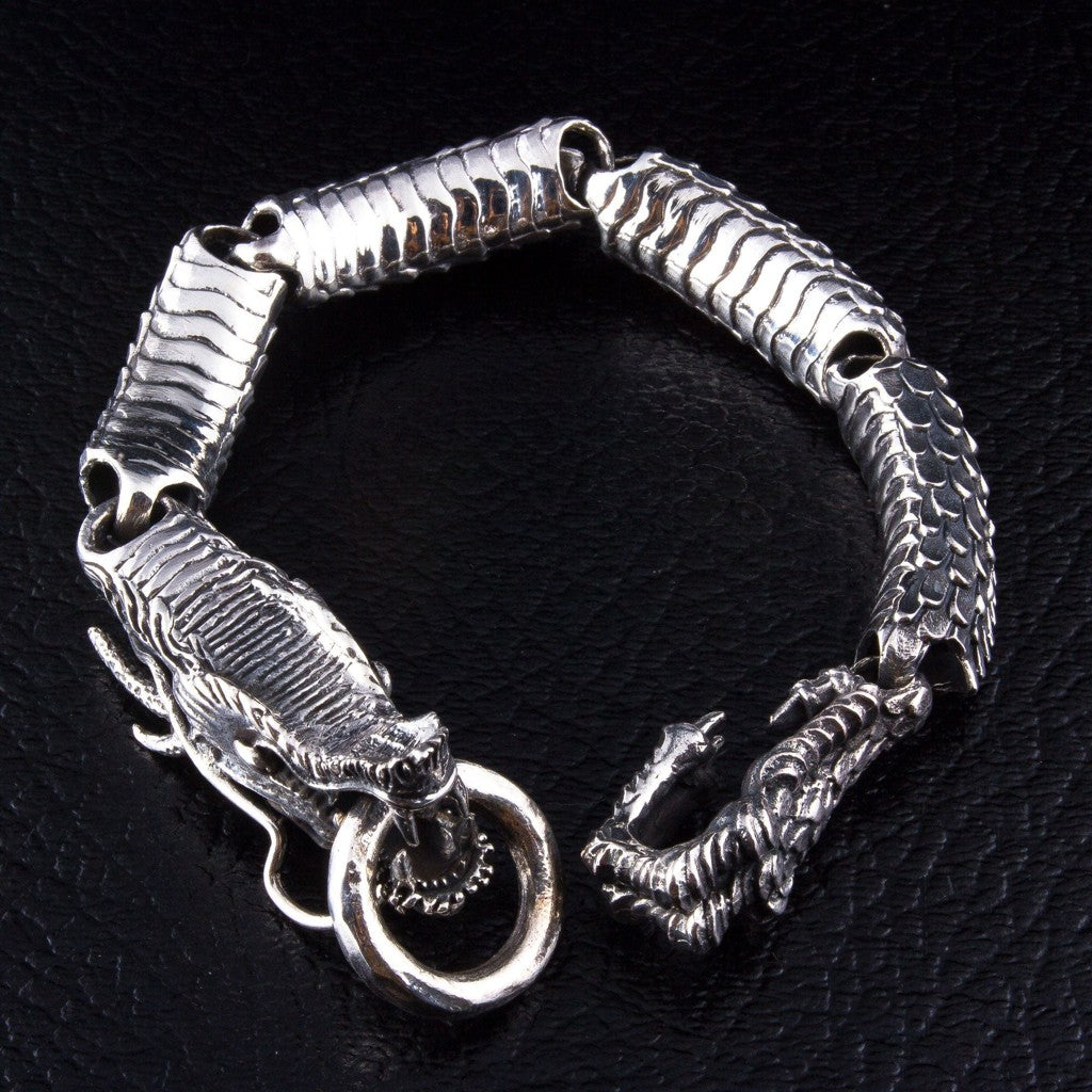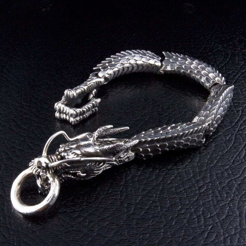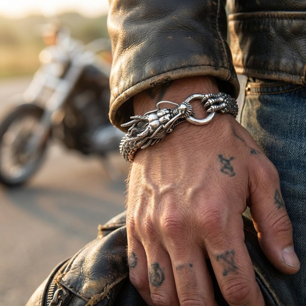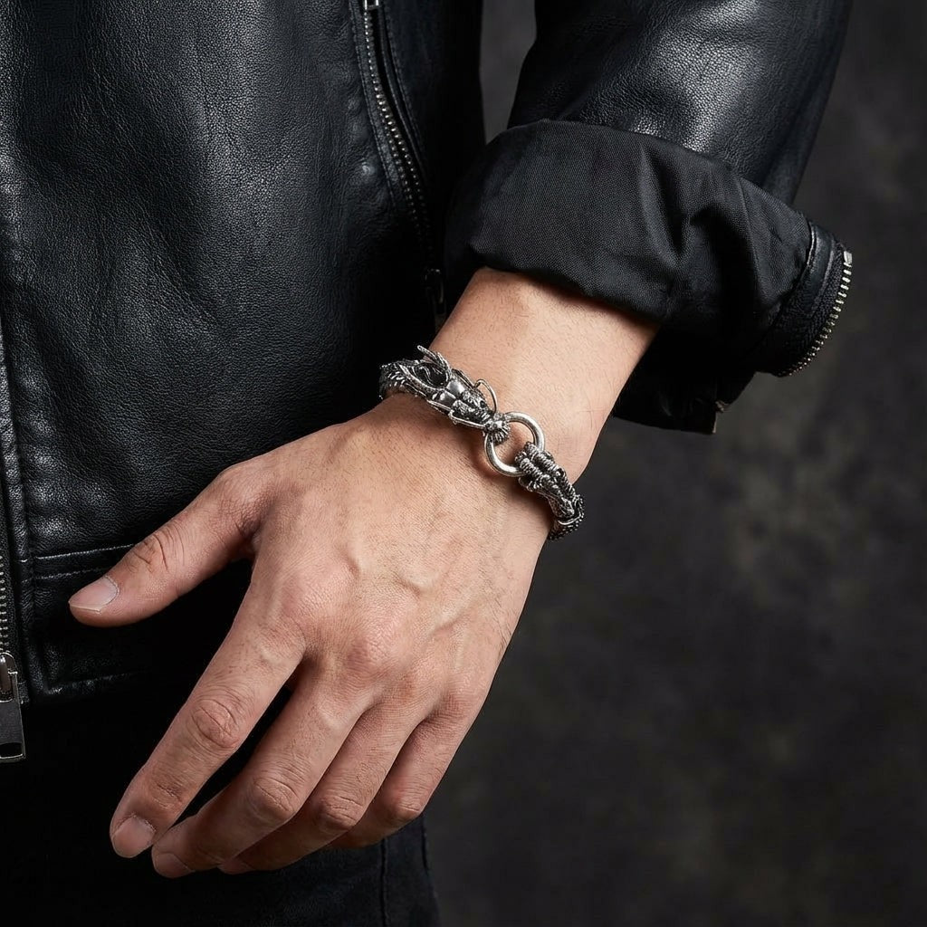 這款厚重的手鍊由純正的.925純銀精心製作,提供無與倫比的耐用性和奢華感。重達105克,其品質立即顯而易見,是摩托車手、搖滾樂手或任何重視獨特哥特式珠寶的人的完美配飾。