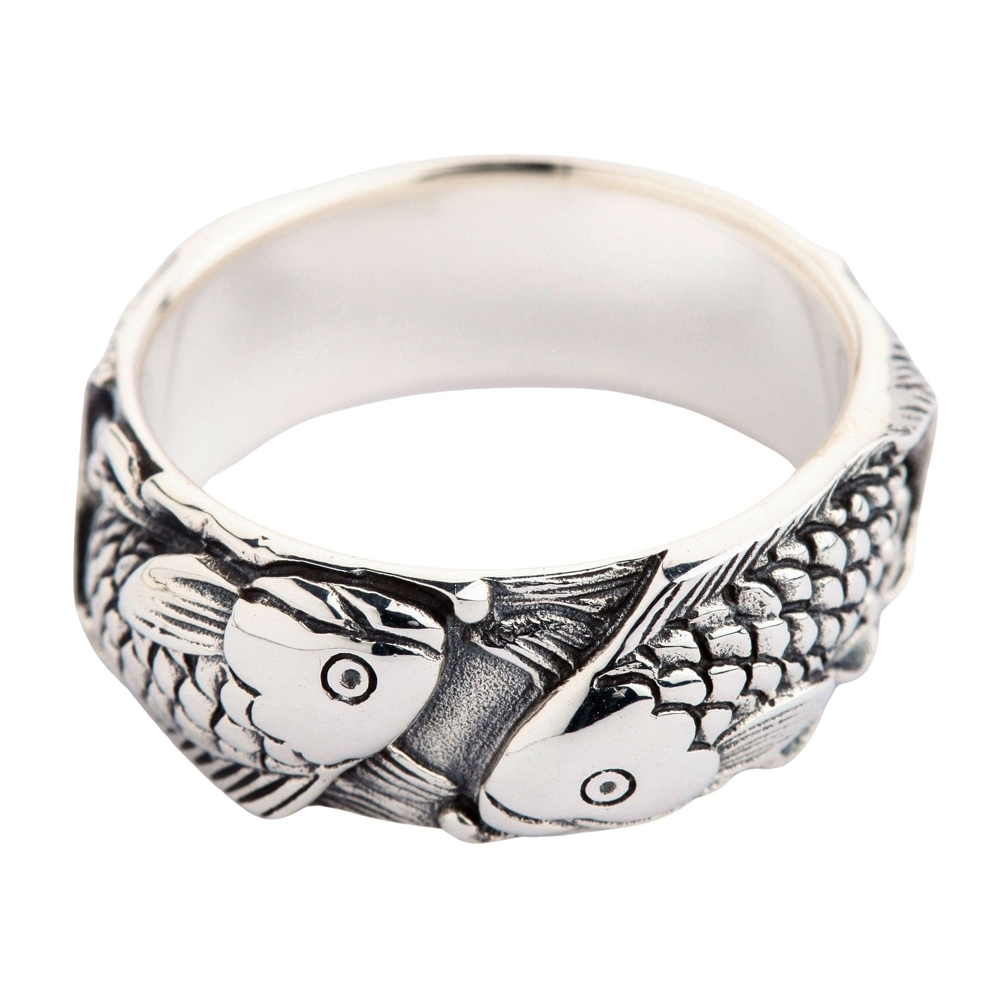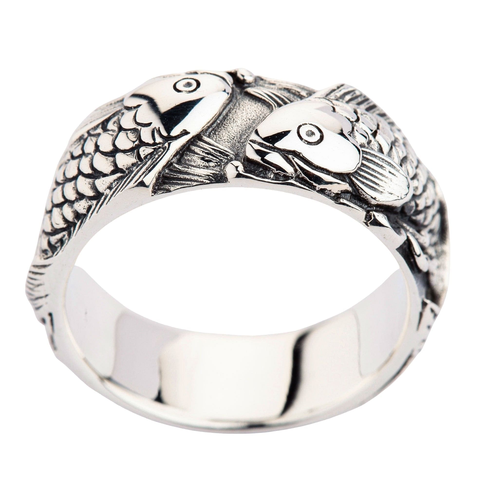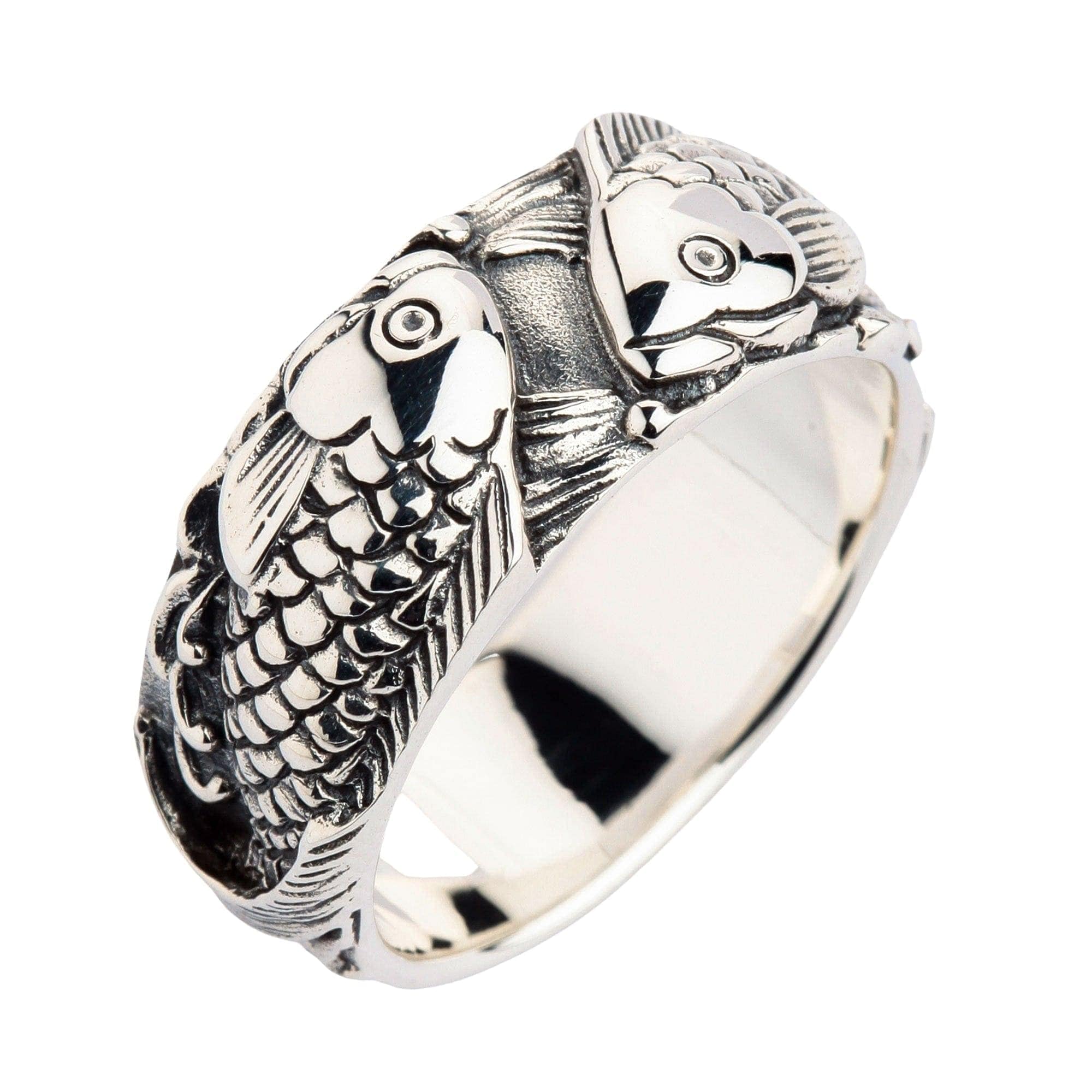這枚日本錦鯉戒指的整個戒圈都在訴說一個故事。兩條錦鯉無盡循環地逆流而上,象徵著人生旅程與夥伴間的堅韌力量,也使其成為獨特又完美的銀質婚戒。兩條魚同時也代表著陰陽平衡,彼此和諧共處。這件錦鯉飾品時刻提醒我們,克服困難需要勇氣,堅貞承諾則蘊含無窮美麗。