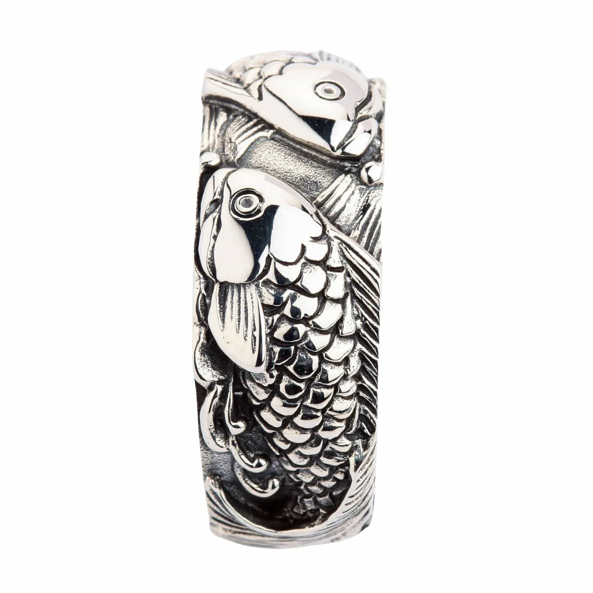 🐟 象徵性錦鯉設計: 整個戒環環繞著兩條逆流游動的錦鯉精緻雕刻場景,象徵愛情、和諧與堅毅不屈。