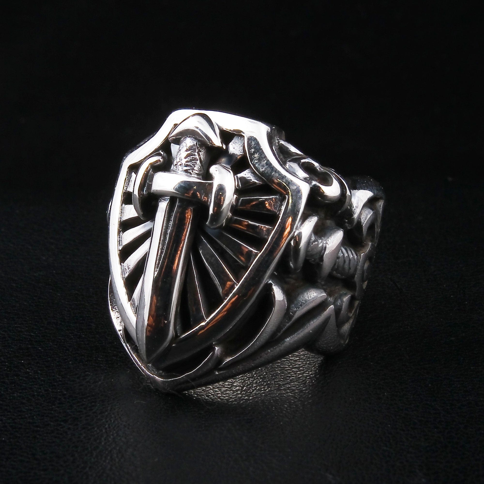 這不僅僅是一枚戒指——這是一種宣言。我們的騎士劍戒猶如可佩戴的盔甲,是對榮譽、力量與守護等永恆美德的強力見證。以純銀實心鍛造,專為遵循信念、無懼贏得尊重的現代戰士而設計。