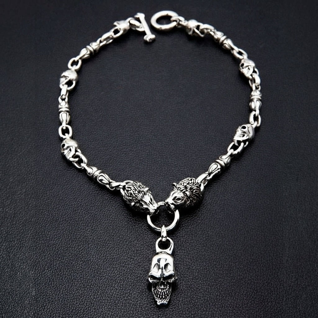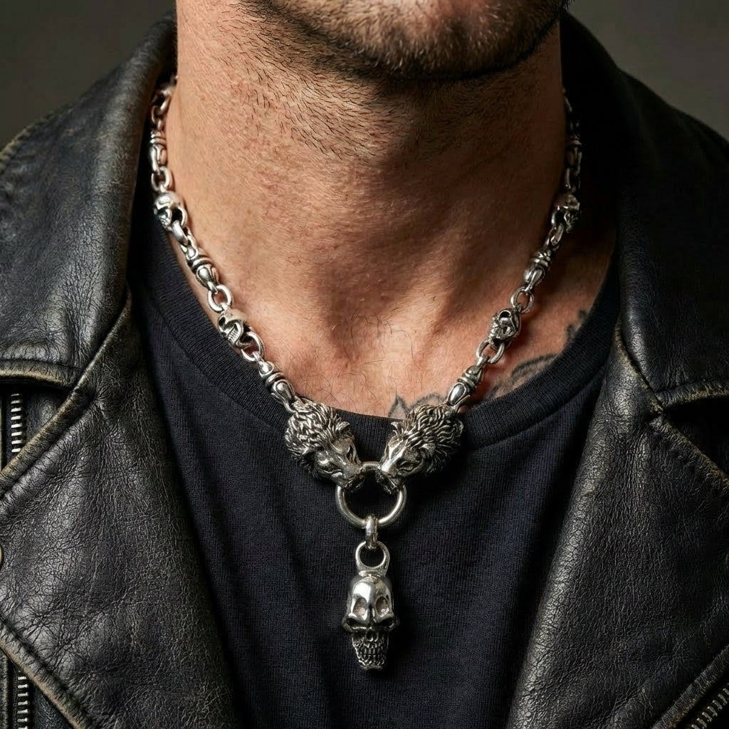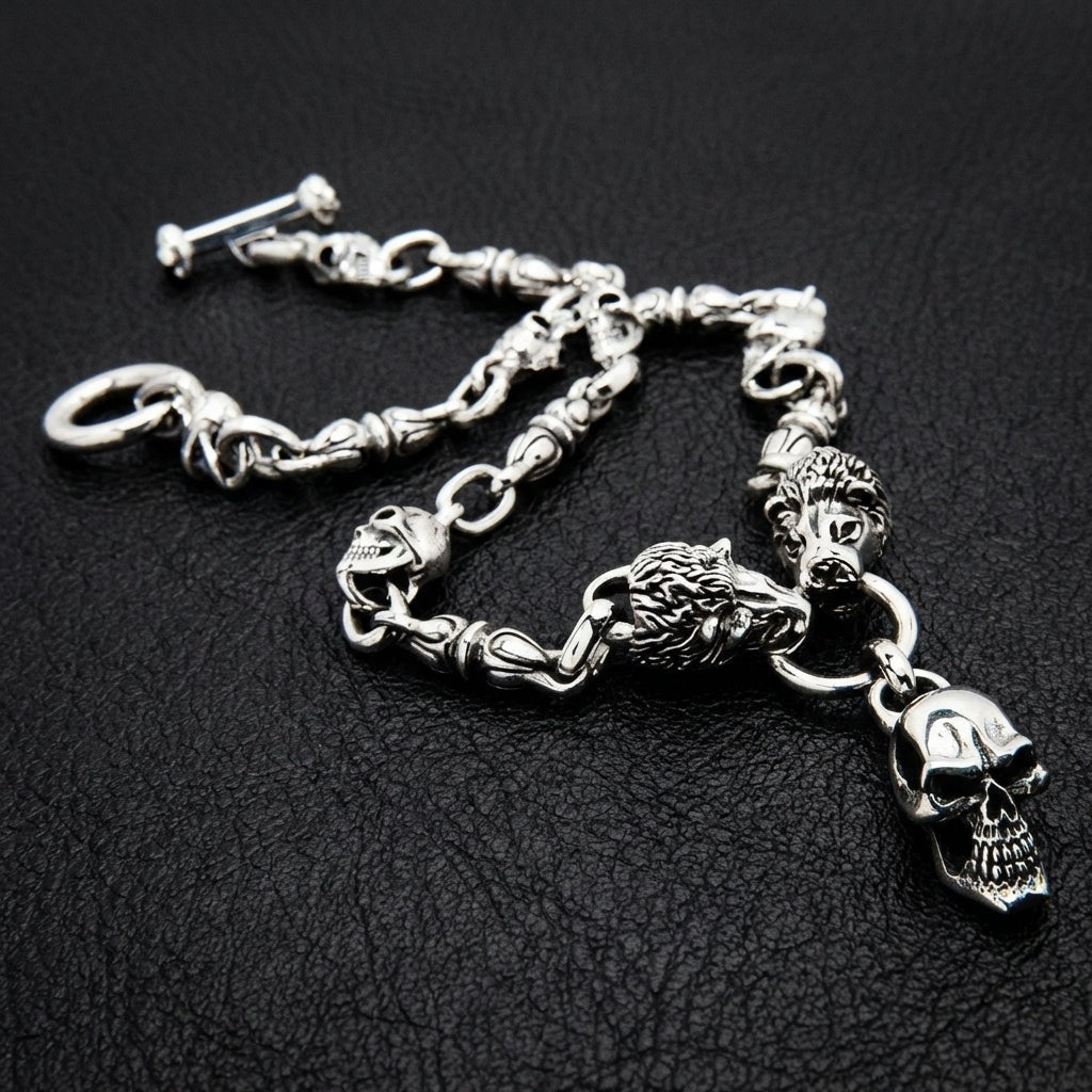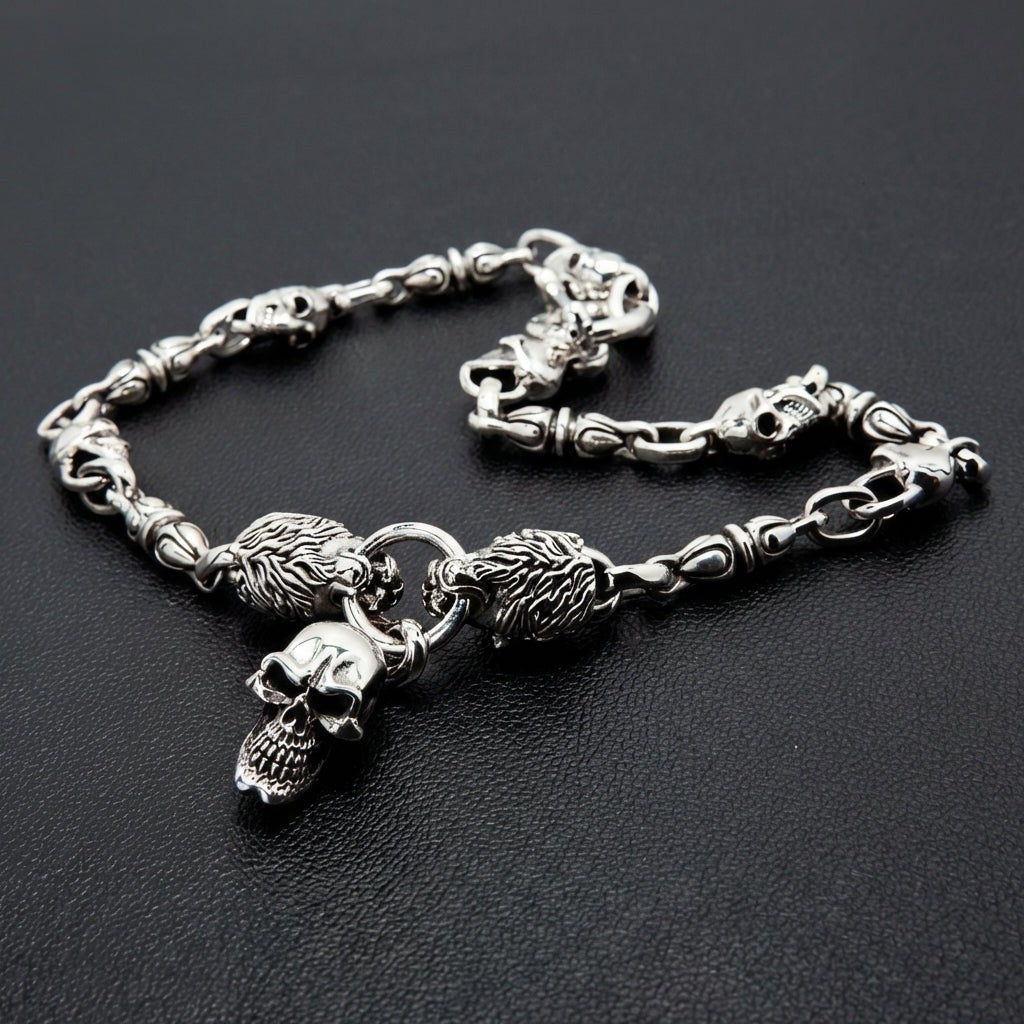 鏈條上鑲嵌精細骷髏頭及精雕獅子,展現無與倫比的工藝。
