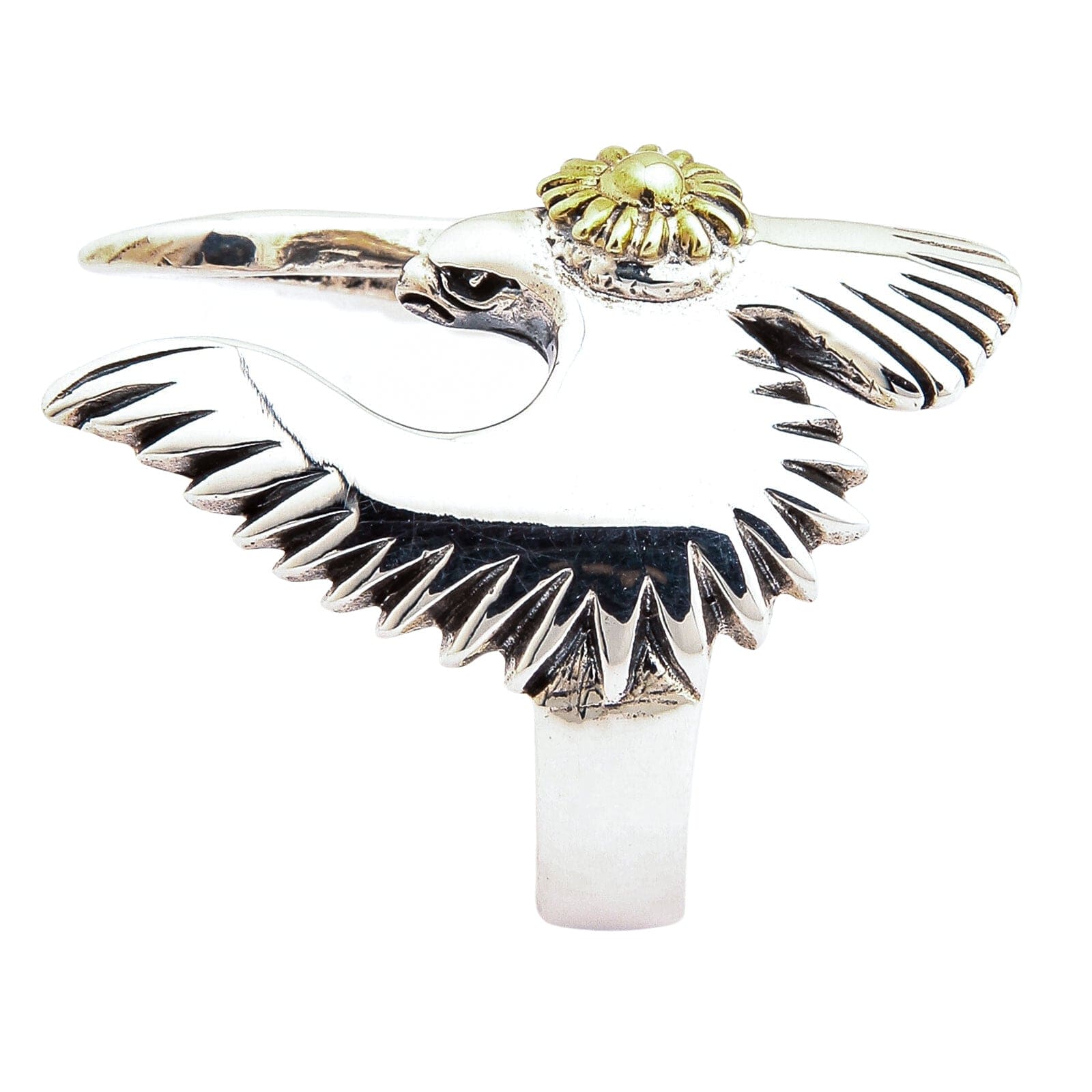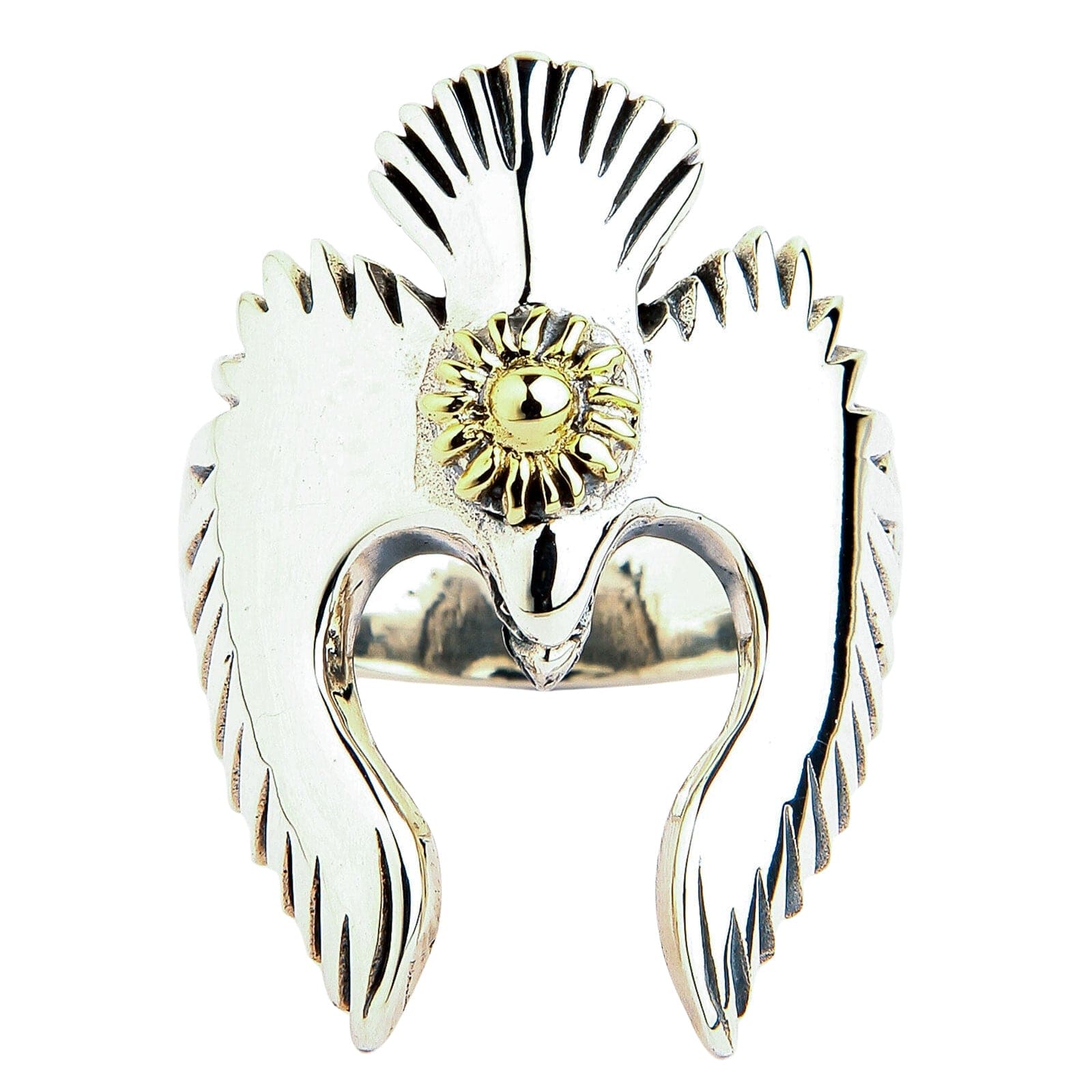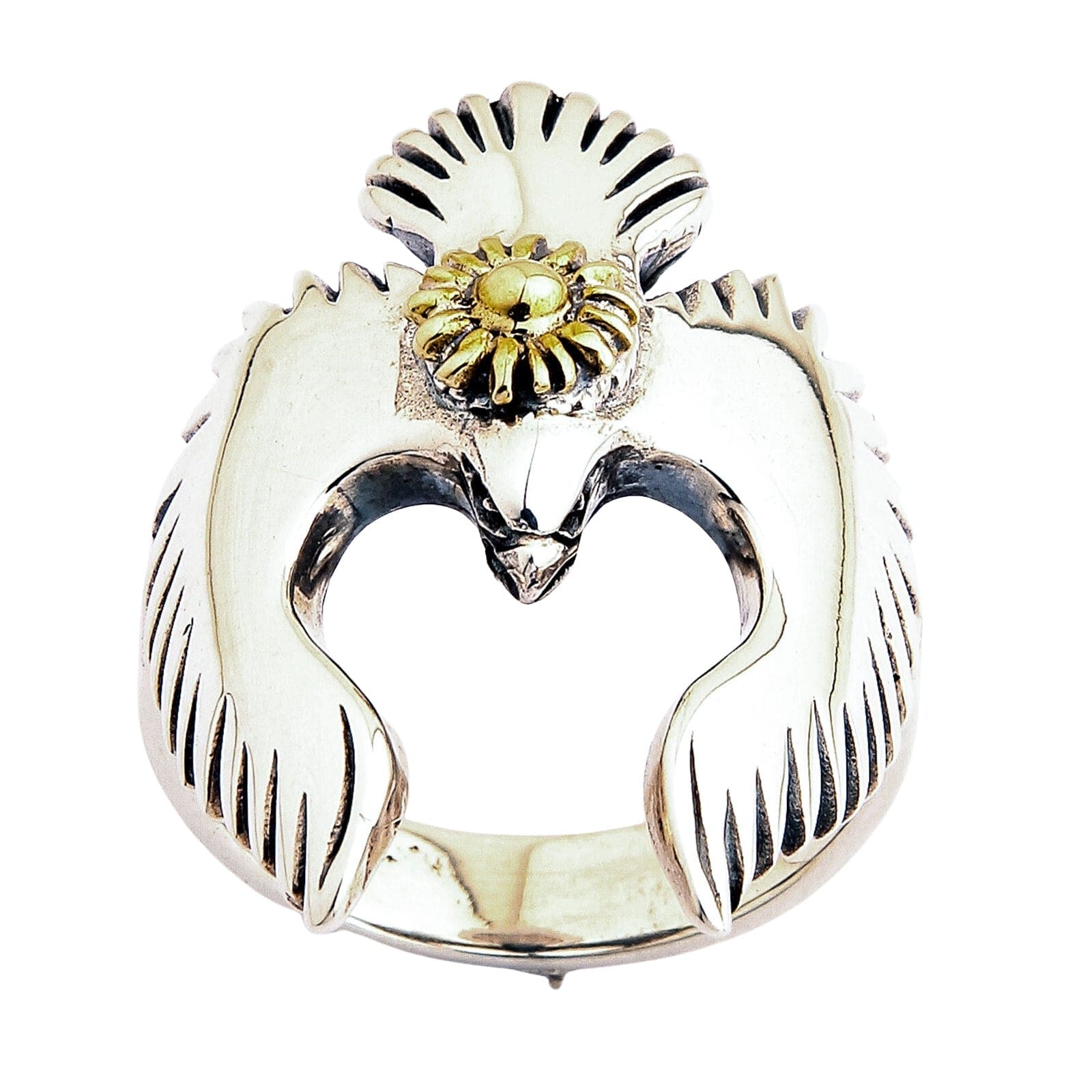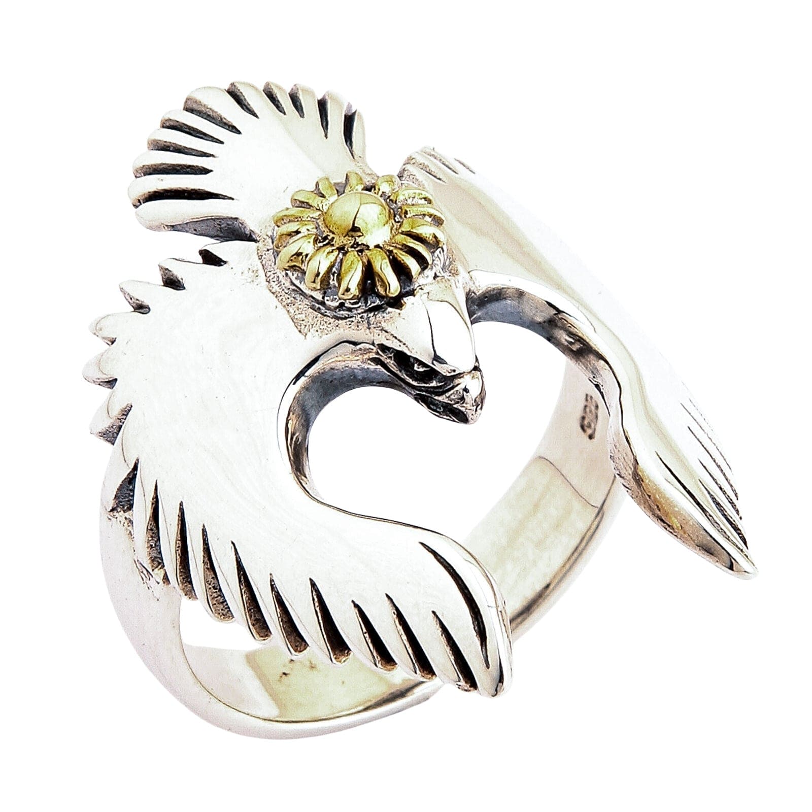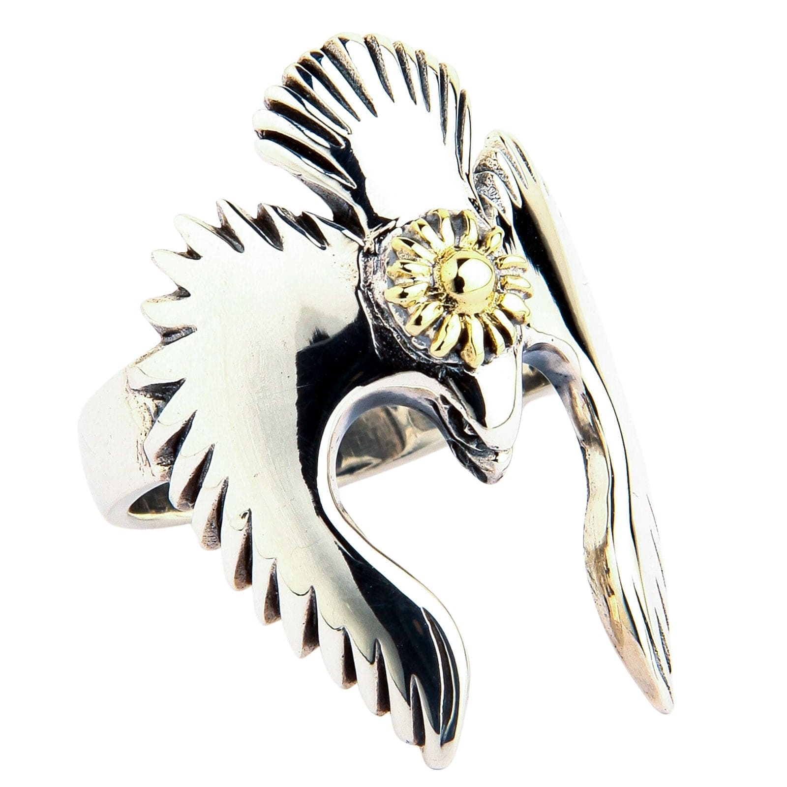 美洲原住民老鷹戒指——純銀搭配金色太陽點綴