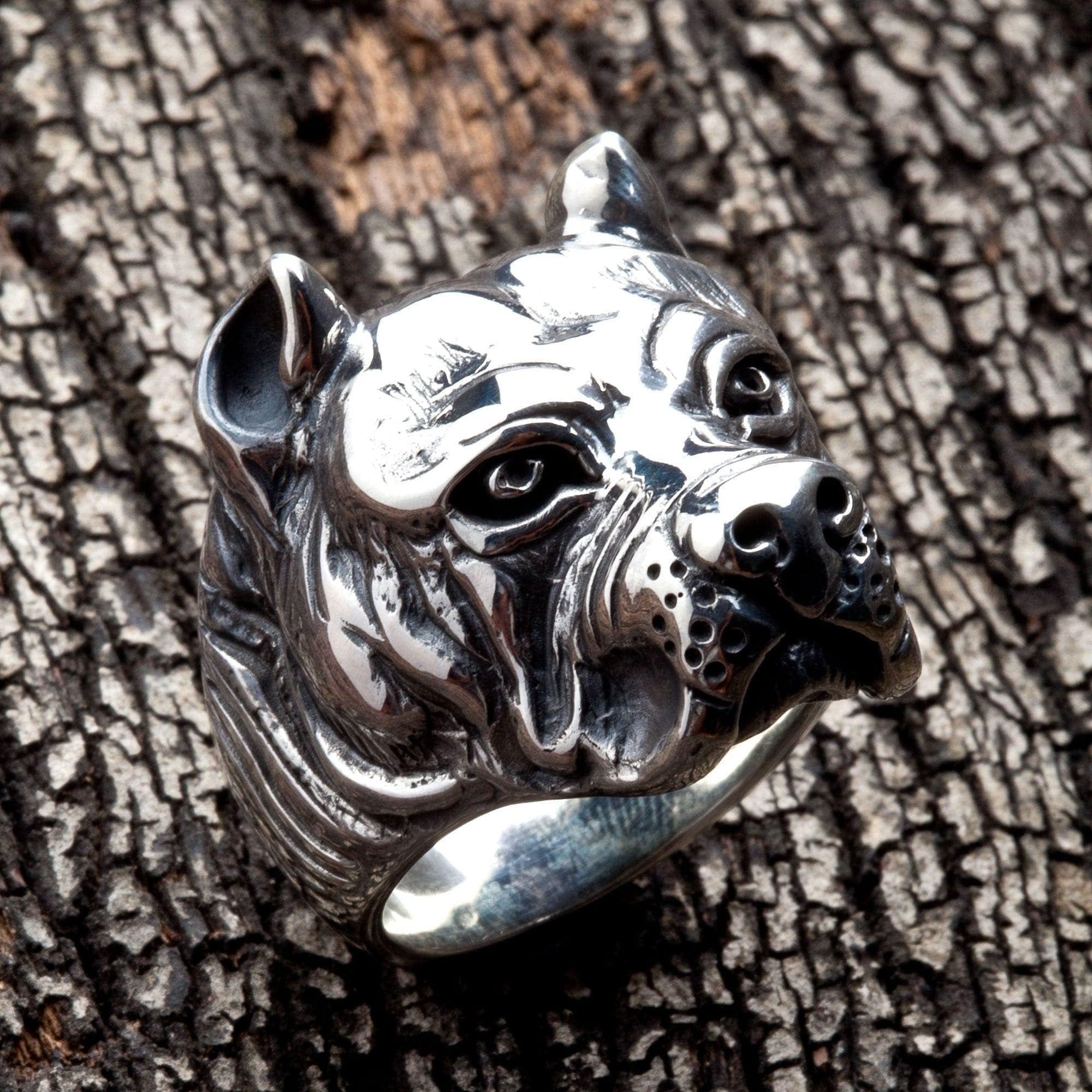 向世上最忠誠且強大的夥伴致敬——這枚壯麗的比特犬戒指。由一整塊.925純銀鍛造而成,這不僅僅是一件飾品;更是一種力量、堅定忠誠與人犬間牢不可破情感的宣示。專為比特犬主人、品種擁護者及尊重這種高貴動物的人士設計,是守護精神的真正見證。