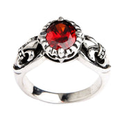 紅色石榴石百合花飾 925純銀哥德式戒指