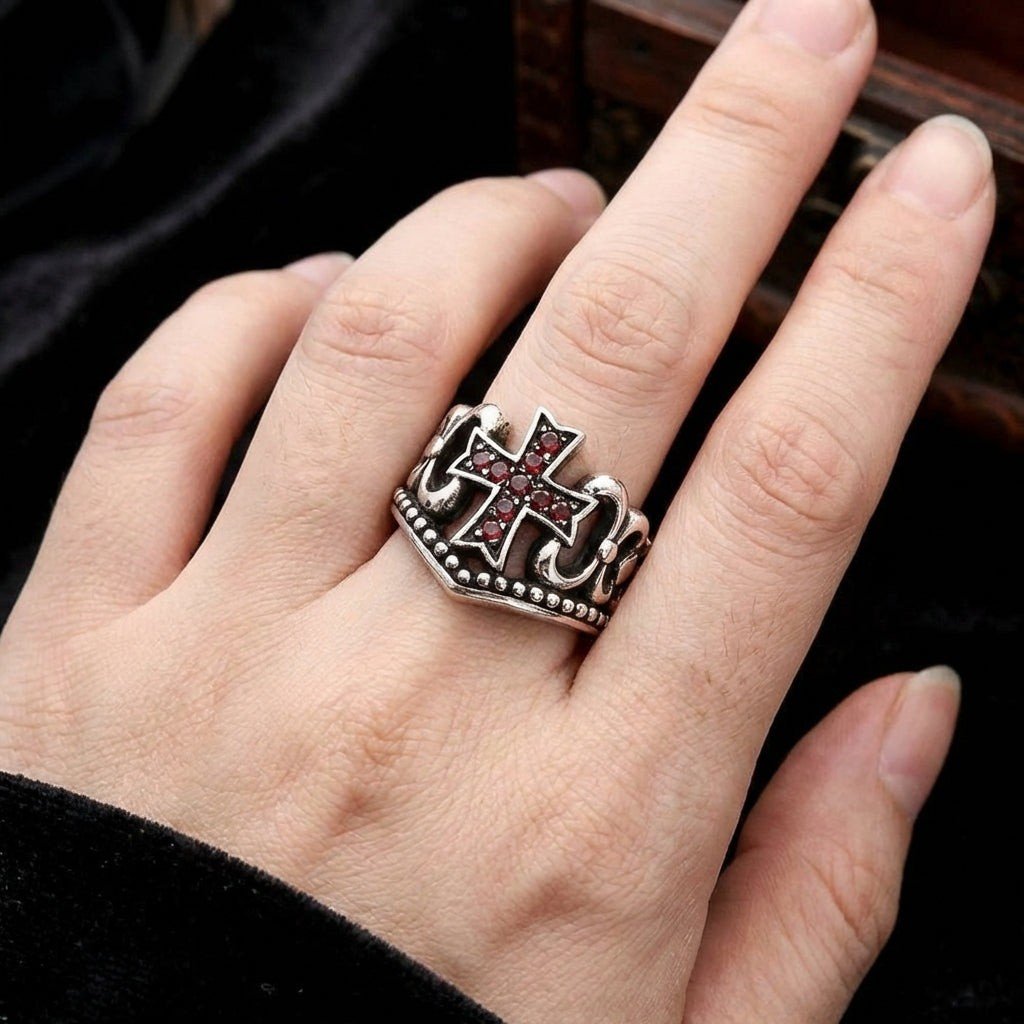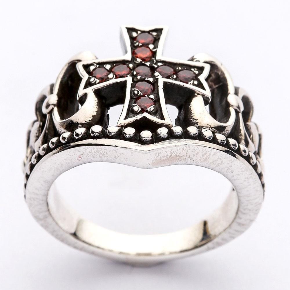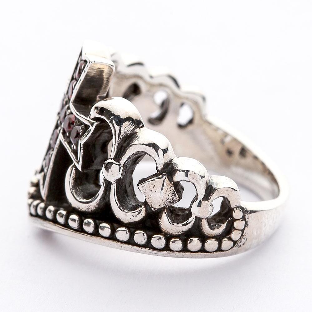 鑲嵌九顆璀璨紅色石榴石鋯石,與亮銀色調形成強烈對比。