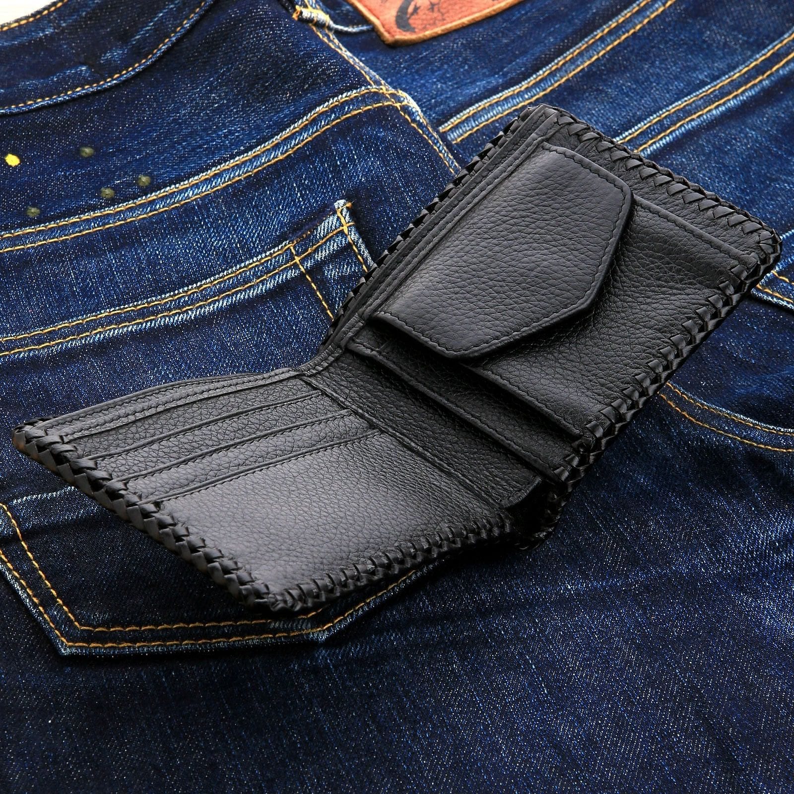 🧵 手工編織邊緣:錢包邊緣以耐用又時尚的手工皮革編織收邊。