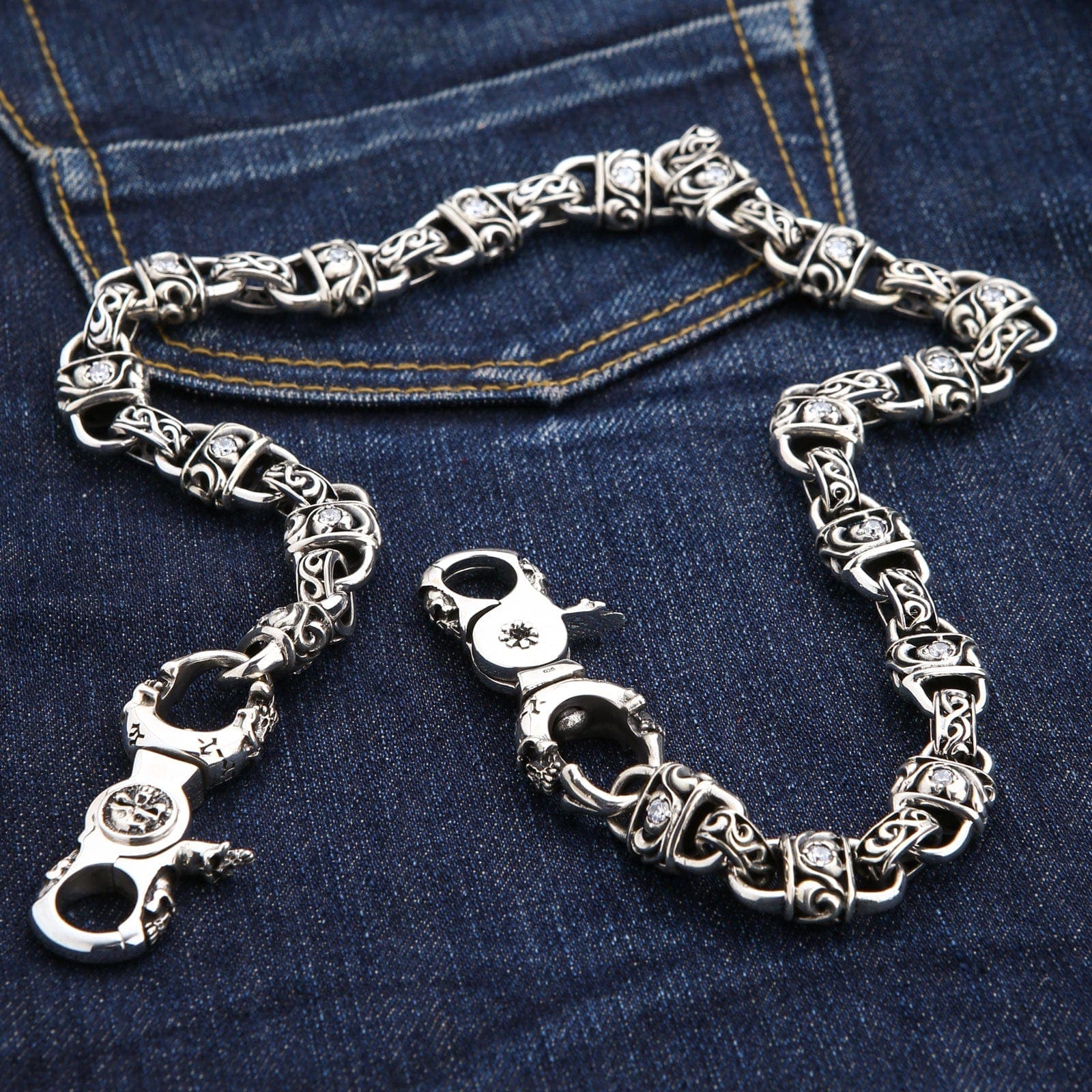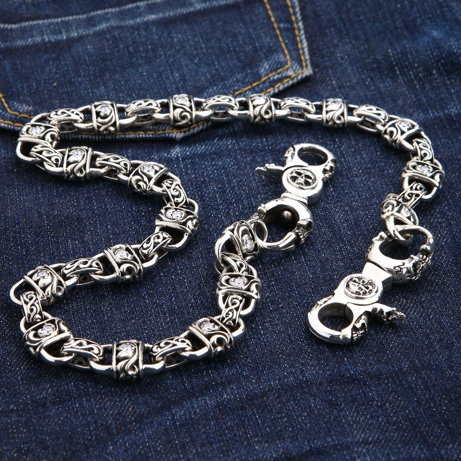 ✅ 頂級925純銀-堅固耐用,歷久彌新,並擁有亮麗拋光。✅ 重型結構,極致安全-🔹 長度:24 吋(61 公分)-日常配戴理想選擇。🔹 重量:228 公克-厚實卻舒適。✅ 安全骷髏蟹扣-牢牢固定於錢包或皮帶環上,兼具安全與時尚。✅ 精工手作-細膩雕琢並刻有.925標記,保證真品。