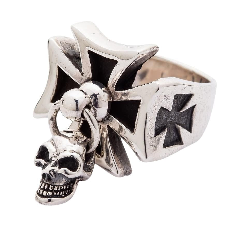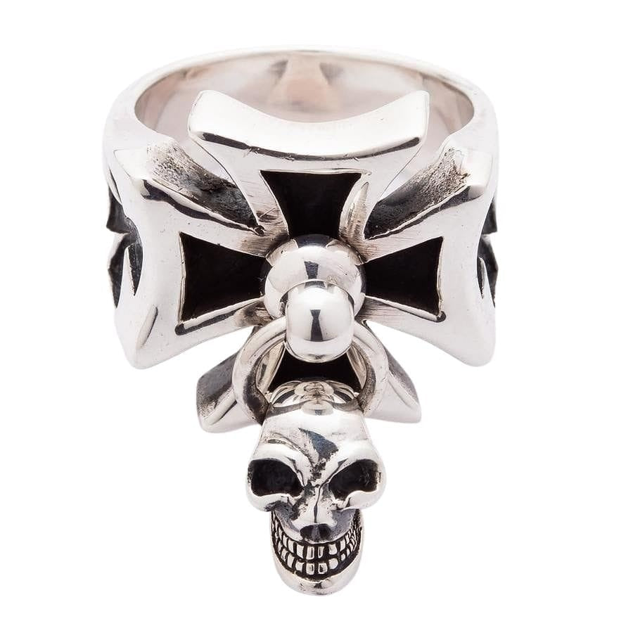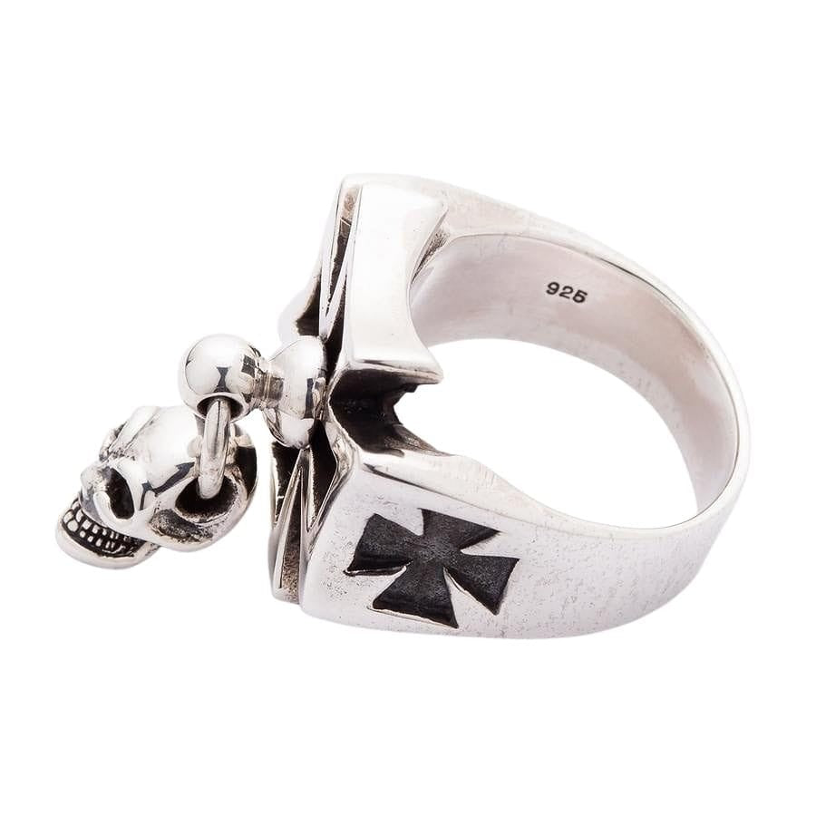 懸掛的骷髏頭墜飾可自由擺動,為戒指增添動感,讓你走到哪都引人注目。