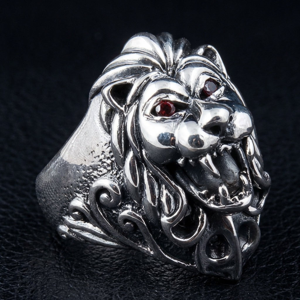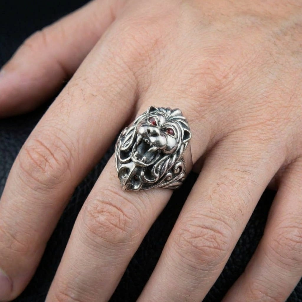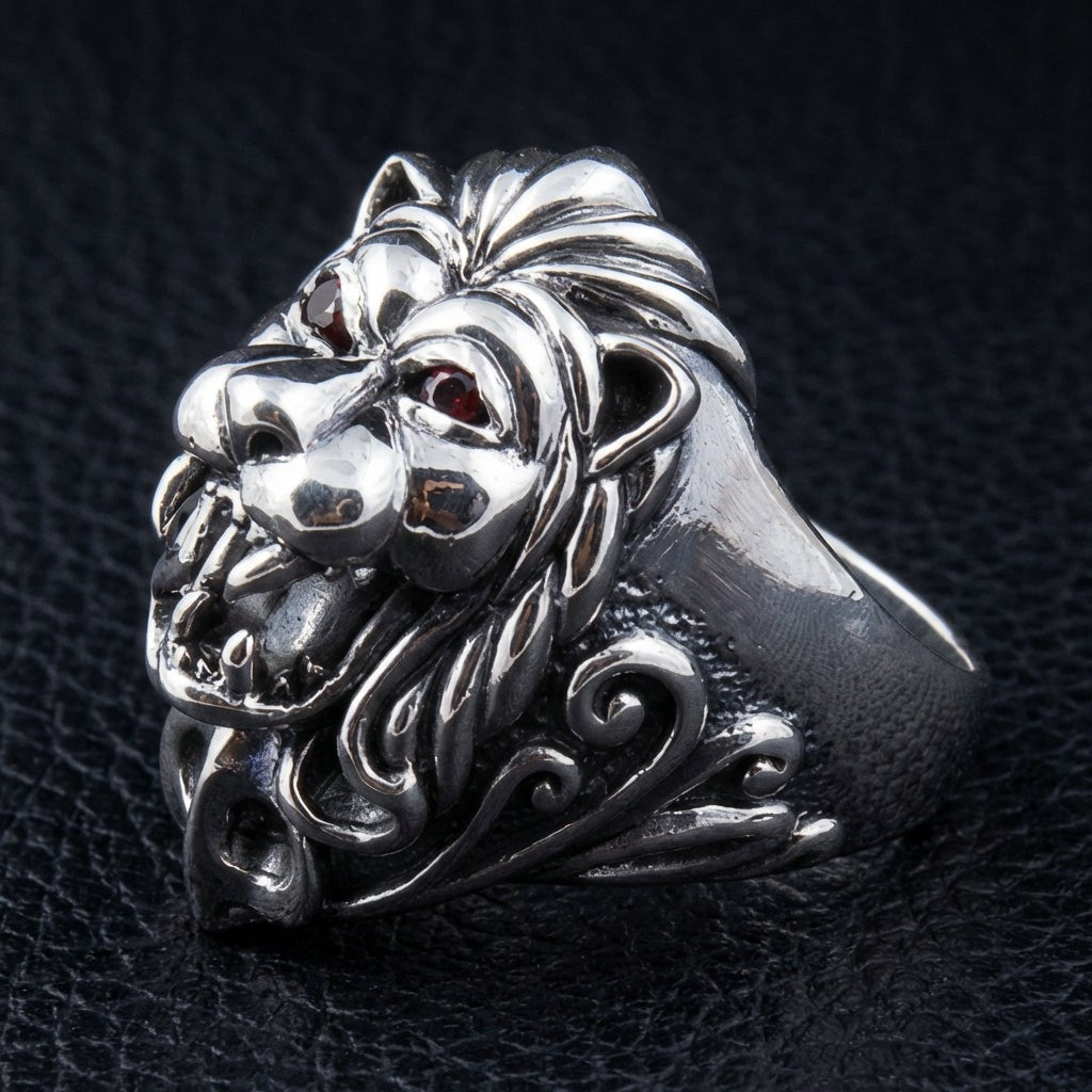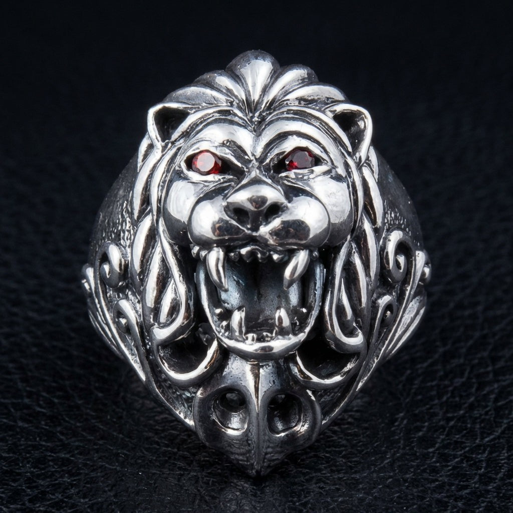 純銀石榴石獅子領主男士戒指