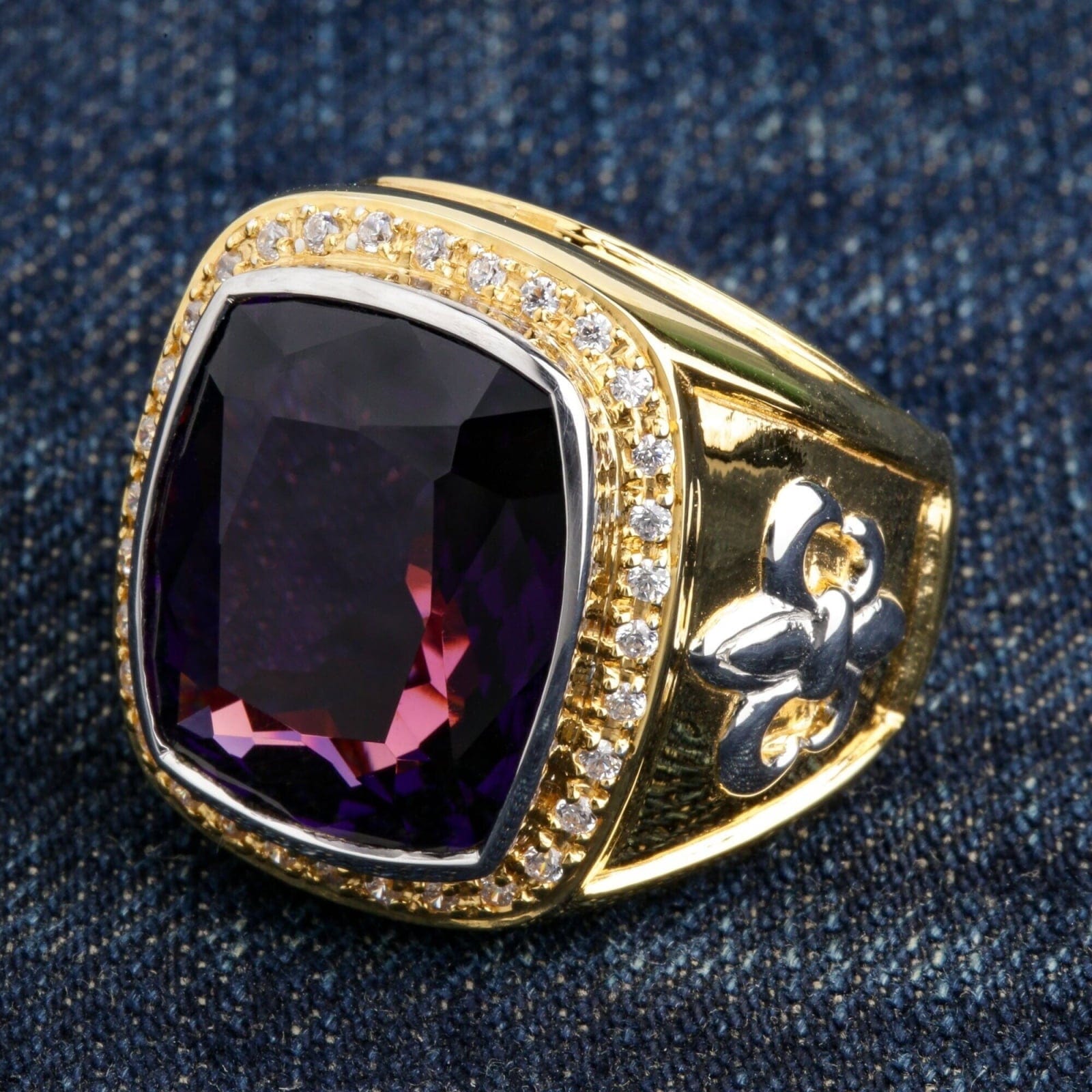主教戒指 – 黃金紫水晶百合花男士戒指